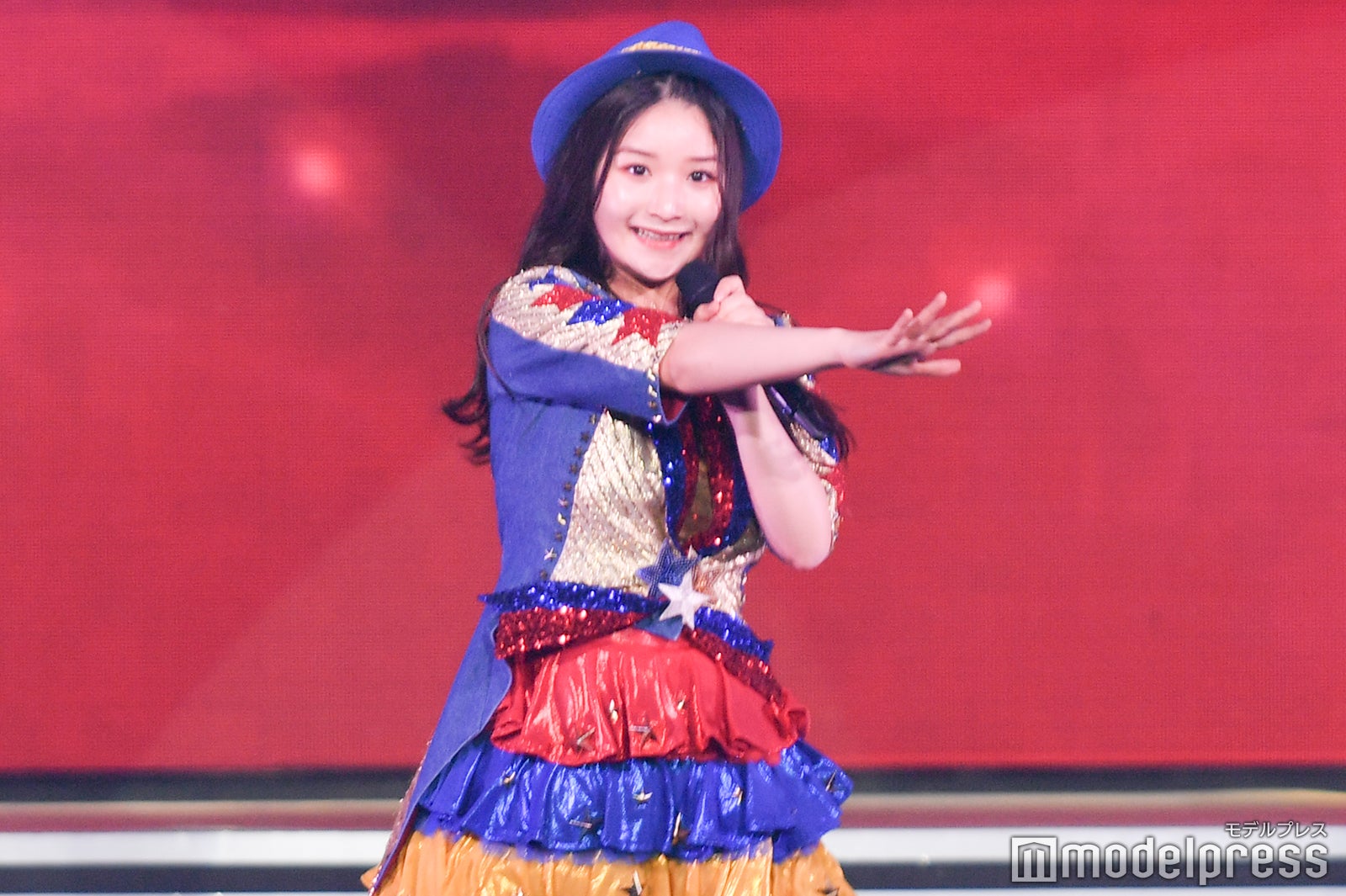 自身のオリジナル楽曲「愛のキャンプファイヤー」のほか、自身が好きだというSTU48の「暗闇」、前田敦子の「セブンスコード」、そして「まさか私が歌うなんて誰も思ってないだろうという曲を選びました」と渡辺美優紀の「やさしくするよりキスをして」を可愛く歌唱。最後に歌詞を間違えてしまい「間違えた…(笑)」と照れ笑いしながら、最後はZARDの「負けないで」で締めくくり、チーム8屈指の歌姫として堂々としたステージで前座として華やかに盛り上げた。