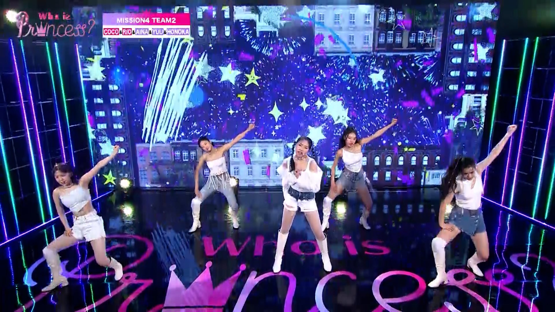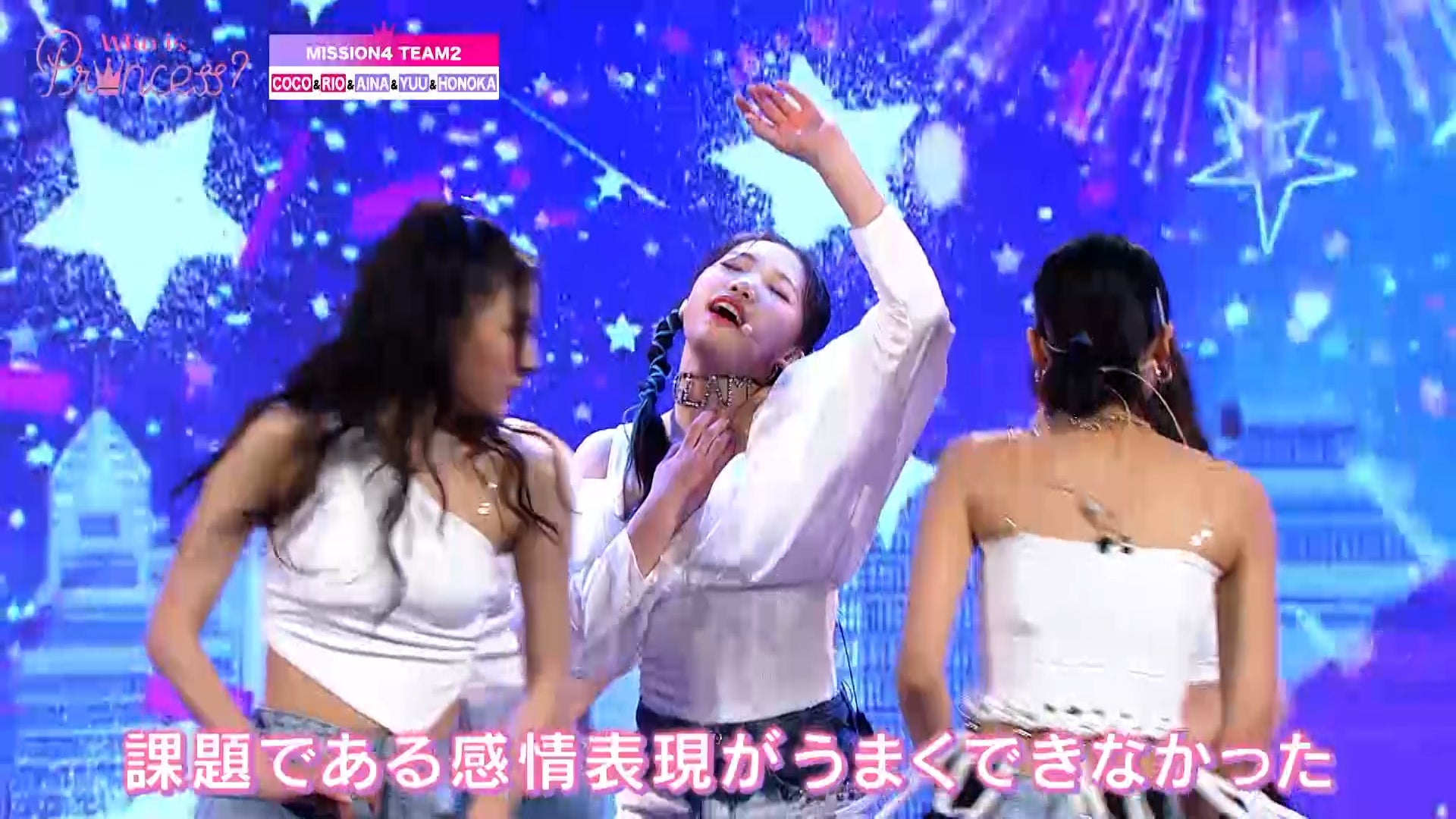 いよいよ今週から<MISSION 4 J-POP×K-POPパフォーマンスバトル>がスタート。デビューに近い「PRINCESS組」7名、脱落に近い「CHALLENGER組」6名の計13名が、J-POPの名曲にK-POP流のオリジナルダンスを加えてパフォーマンスするチームミッションに挑む。今回はこれまでとは違い、「PRINCESS組」と「CHALLENGER組」の混合チームとなる。チームと個人のパフォーマンスを総合的に評価し、上位2チームは全員次のミッションへ進むことができるが、最下位チームから1名が脱落。これまでは「CHALLENGER組」から脱落者が出ることになっていたが、今回のミッションでは最下位チームになれば「PRINCESS組」から脱落者が出る可能性もあることが発表されると、意外なルールに少女たちも驚きを隠せない。新ルールに危機感が募る。