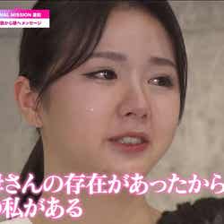 さらに、サプライズで披露されたのが家族からのビデオレター。離れて暮らす愛娘へ向けた感動的な映像が流れる中、最年少13歳で福岡県から上京しているRINへのビデオレターには、両親と愛猫がそろって出演。「RINが出発してすぐはRINの話をするたびにママが涙ぐんでいた」と会えない時間を惜しみつつも「夢を見つけてひたむきに頑張っている姿は本当に誇らしいと思っている。ぜひデビュー組に入ってママに嬉し涙を流させてやってほしい」と温かいエールを贈った。RINは大粒の涙をこぼしながら「家族のみんなの支えが一番大きい。パパとママの誕生日が近いので、デビューして誕生日プレゼントにできるよう頑張る」とコメント。ファイナルミッションへの決意を固めた。