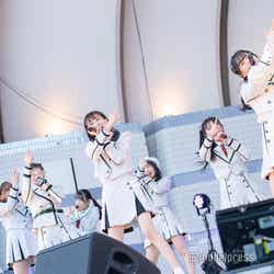中盤は、“食のイベント”にちなんで「カモミール」「片思いの唐揚げ」「メロンジュース」と“食べ物セトリ”を披露。途中のMCでは、来年1月にグループを卒業する上島が、この日の16名が3期以降のメンバーで構成されていることにふれたうえで、それぞれの未来に太鼓判を押す場面も。約1時間に渡るライブでは全16曲を披露し大盛り上がりのまま幕を下ろした。日本最大級の食×音楽の野外フェス「超!喰らいマックス」