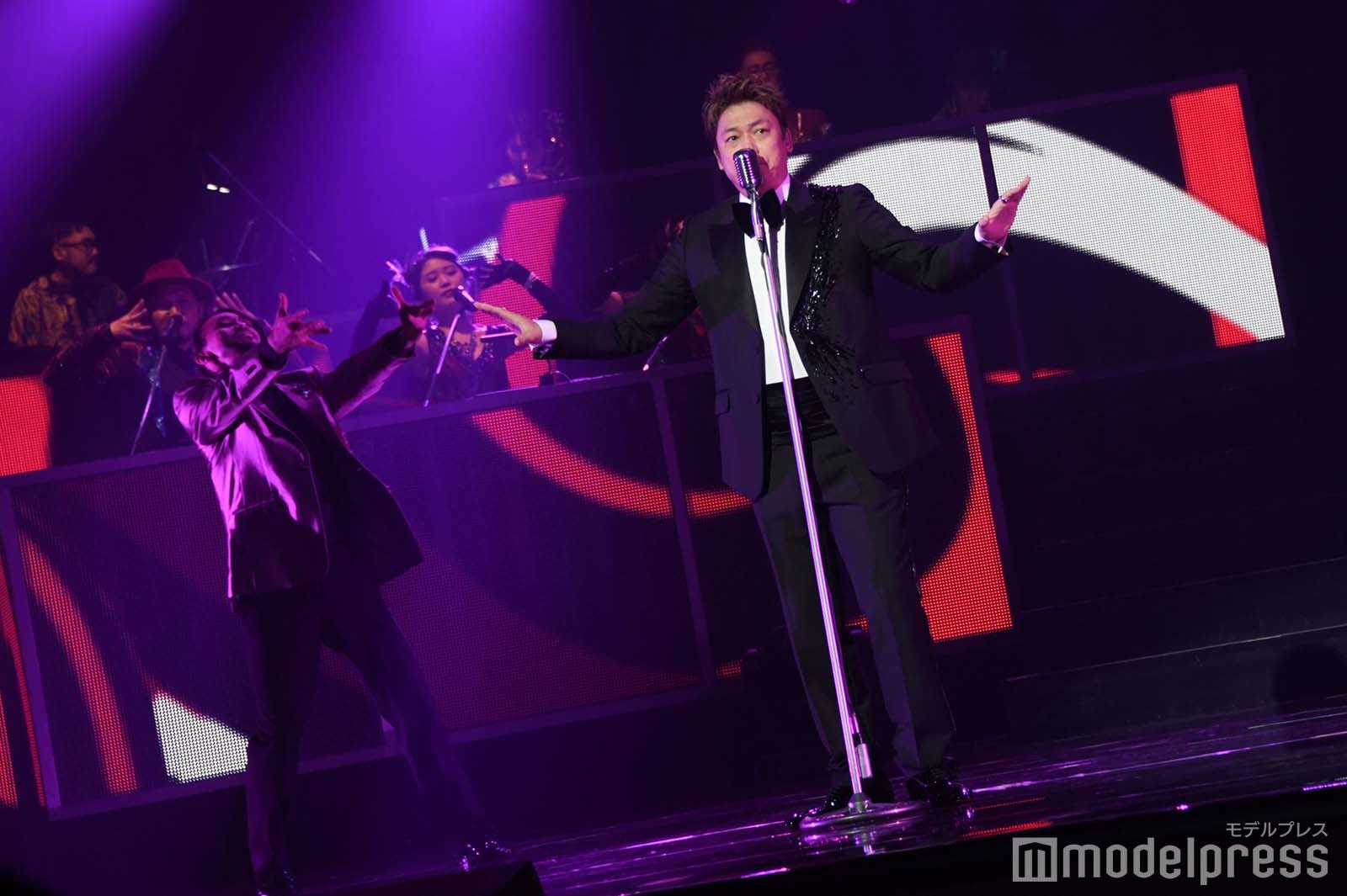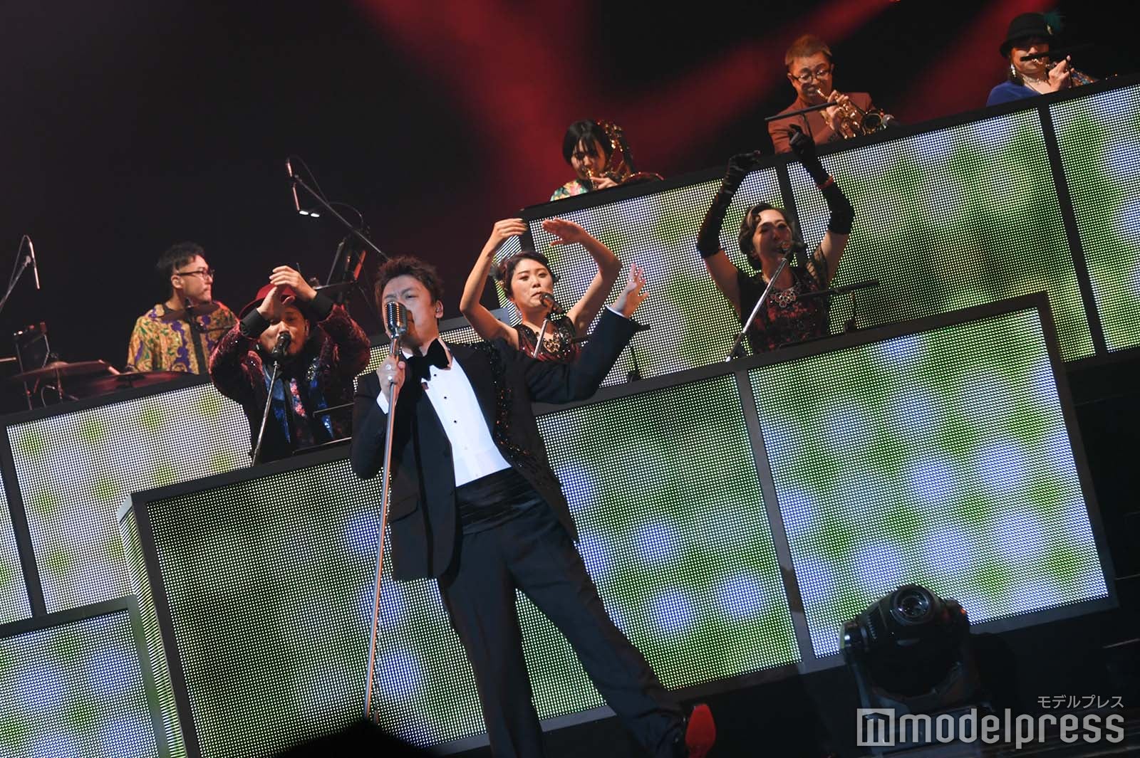 初のジャズアルバムとなった『東京SNG』。その世界観が存分に表現されたステージで、バンドメンバーとコンタクトを取りながらジャズセッションを楽しむ香取の姿が印象的。贅沢な生バンド演奏と、大人な魅力たっぷりの新しい香取慎吾が堪能できた。