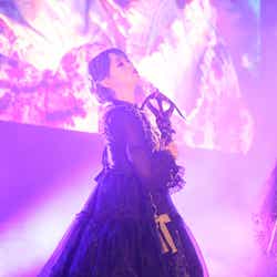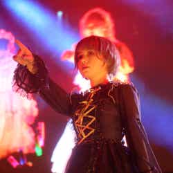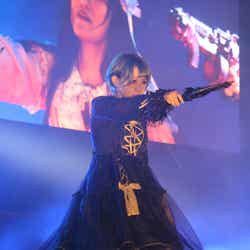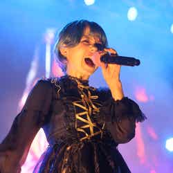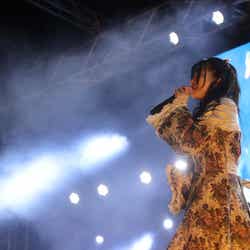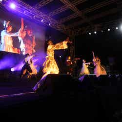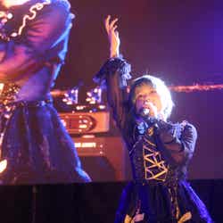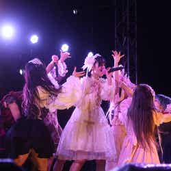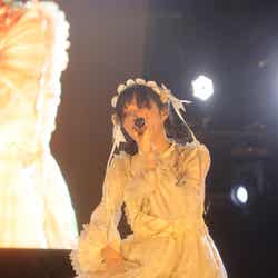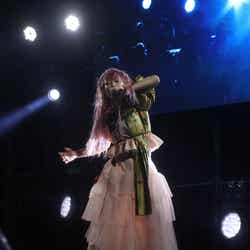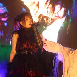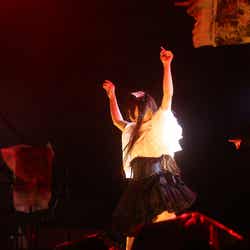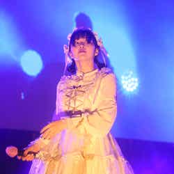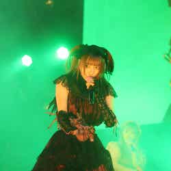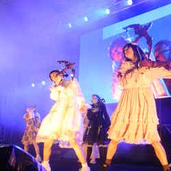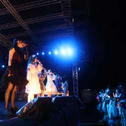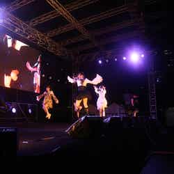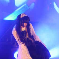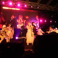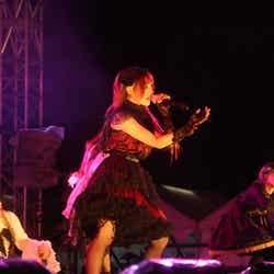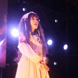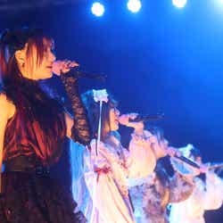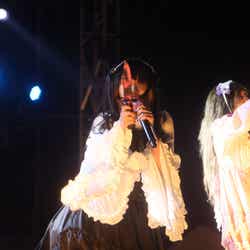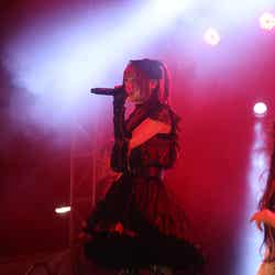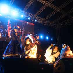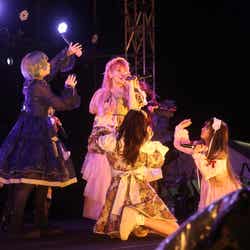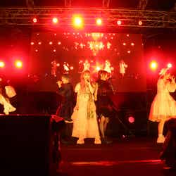 直前に雨が止み、澄んだ夜空と赫赫たる照明がロリータ衣装に身を包んだ7人の世界観をさらに耀かせ観客を魅了。全6曲で会場を圧倒した。