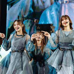 渡邉のリクエストが詰まっているという同ライブは、グループやファンへの愛溢れる演出やセットリストで構成。欅坂46時代からの渡邉の映像を振り返ったVTRでスタートすると、冒頭では渡邉のセンター楽曲「無言の宇宙」を全員笑顔でパフォーマンスし、渡邉らしいステージの幕開けとなった。1期生パートでは、欅坂46時代の楽曲も多数。改名後初パフォーマンスとなった「二人セゾン」では、正面のスクリーンに大きな欅の木が映し出され、深い緑色の衣装を着たメンバーが登場。渡邉が所属するユニット「FIVECARDS」の楽曲「僕たちの戦争」(渡邉、土生瑞穂、上村莉菜/※現在は卒業しているが長沢菜々香、渡辺梨加もユニットメンバー)や、「青空とMARRY」の楽曲「青空が違う」(渡邉、菅井/※現在は卒業しているが志田愛佳、守屋茜、梨加もユニットメンバー)なども披露し、これまでの思い出を振り返るとともにファンへの感謝を届けた。