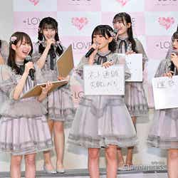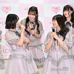 同発表会では、今回のシングルタイトルにちなみ、思わず応援したくなるようなコンプレックス『愛されコンプレックス』をそれぞれが発表する企画も行われ、「ちょっとチビ!」と書いた山本は「ほんのちょっとなんですけど、2列とかになると前にいるメンバーが(中腰で)すごくしんどそうでかわいそうだなと思っているんですけど、気にかけてくれたりして、メンバーの優しさを感じるので愛されてるなと思います」と説明し、身長を聞かれると「えーっ、どうしよう」と困惑。続けて「149.6くらいです」と答えると、メンバーからは「そんなにないでしょ」「嘘つき(笑)」とのツッコミが飛んだ。「女の子っぽい食べものを好きになれない」という諸橋は「ショートケーキとかシュークリームとかより梅水晶が好き」と渋い一面を明かし、メンバー最年少の齋藤は「大人になりたい!」と書き「ファンの人とはそういうイメージがついちゃっていて、みんなに子ども扱いされてしまうんですけど、家では長女でお姉ちゃんだし、もう高3で今年18歳の成人になるので大人になりたい!」と言葉に力を込めた。