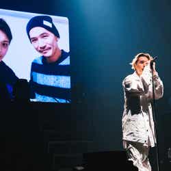 嵐が去ったように静まった会場で、スタンドマイクを握りどんな時も信じ続け支えてくれたという母への感謝を込めた『EVE』を歌唱。『PERIOD.』でも支えてくれた人々と苦労を乗り越えてきたことを歌ったNovel Coreは、 “大親友”Aile The Shotaを呼び込み『HAPPY TEARS feat. Aile The Shota』へ。多幸感溢れるサウンドに会場はぱっと華やかになり、涙を流す人の姿も。「会いたくてしょうがない」「親友ってこういうもん!」と話す2人の何者にも代えがたい絆を強く感じさせた。