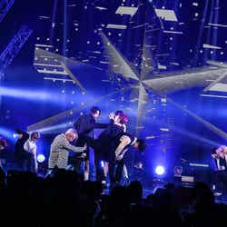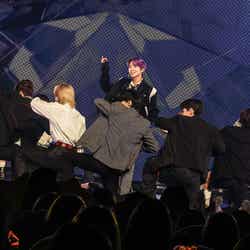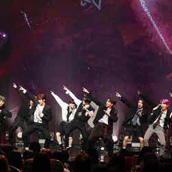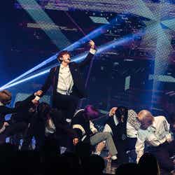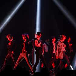 まずタイトル曲「With Us」のステージから開幕。15日に行われた会見を体調不良で欠席していた大平も「お待たせしました!」と元気な姿で復活し、司会のハリー杉山に感化されて英語混じりで挨拶するメンバーも。