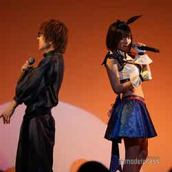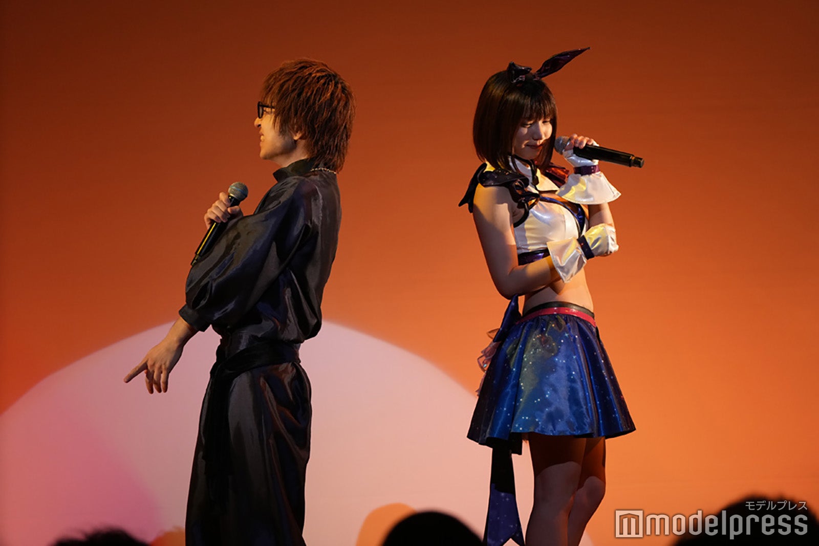 えなこは、青木佑磨との「Love◆Rabbit(◆はハートマーク)」でイベントをスタートさせ「よかった~。いっぱい来てくれて」と多数のファンの来場に安心した様子。「Love♡Rabbit」をファンの前で初披露したことについては「歌うのはCDのREC(レコーディング)以来なので、どうなることかと思いましたが」と話し、はにかんだ。当日の衣装に関しては「今回は歌詞に寄せまして。うさぎと宇宙と聞いてたので、うさ耳っぽい感じで。リボンとかスカートにギャラクシー感のある布を使って」と解説。「白いところもてかてか感やメカニック感を出したくて、こういう生地に」と語った。