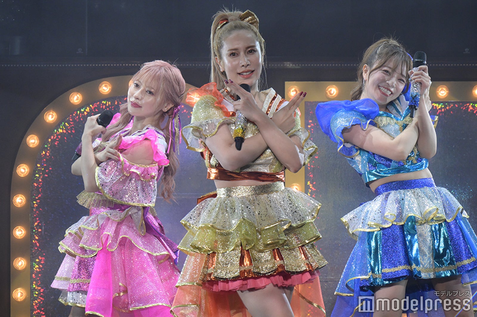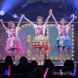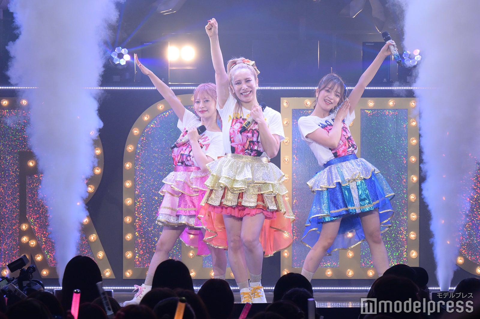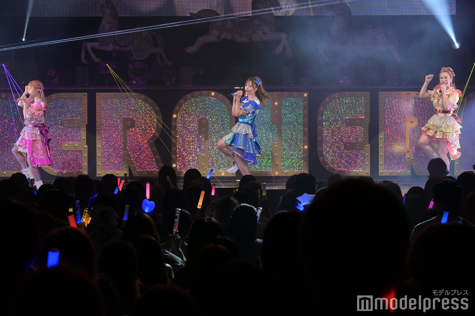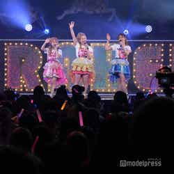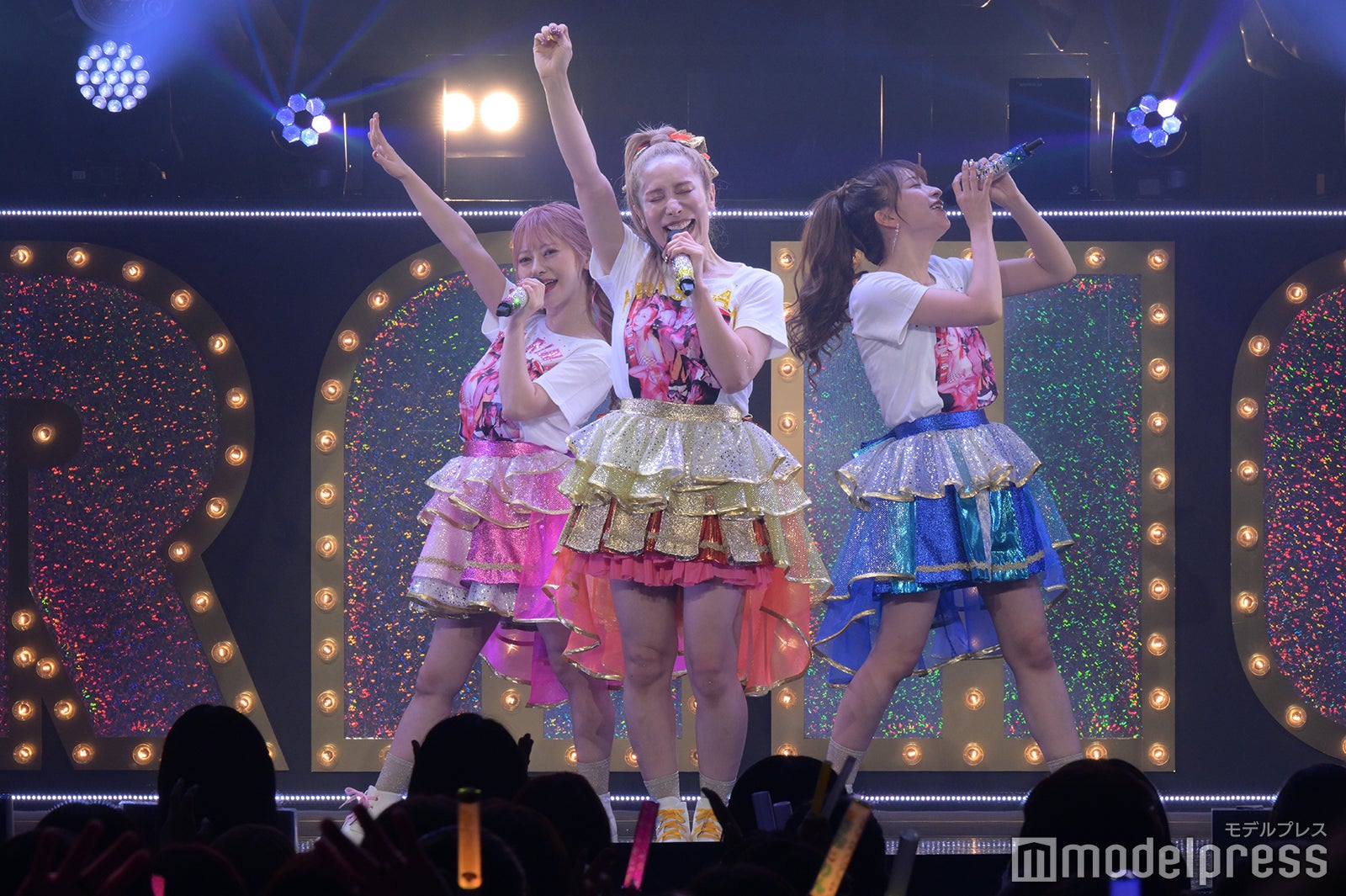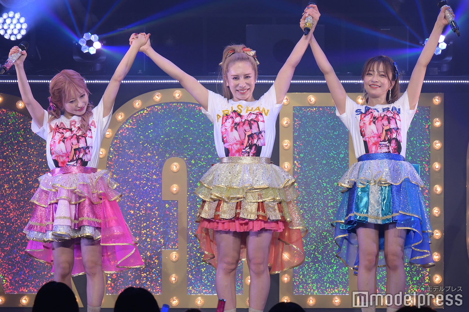 フリルをあしらったメンバーカラーの衣装をまとっていたメンバーだが、アンコールではコンサートTシャツを着用し登場。最後の挨拶では、さおりんがこれまでの活動を振り返り「笑われることもあった」と吐露した一方で「いくつになってもこの3人で頑張っていきたい」と力強く意気込み。ありしゃんはコンサート本番に向けてのダンスや歌への不安もあったとしたが、その経験から学んだこととして「失敗を恐れずにいろんなことに挑戦してほしい」とまっすぐに呼びかけていた。
