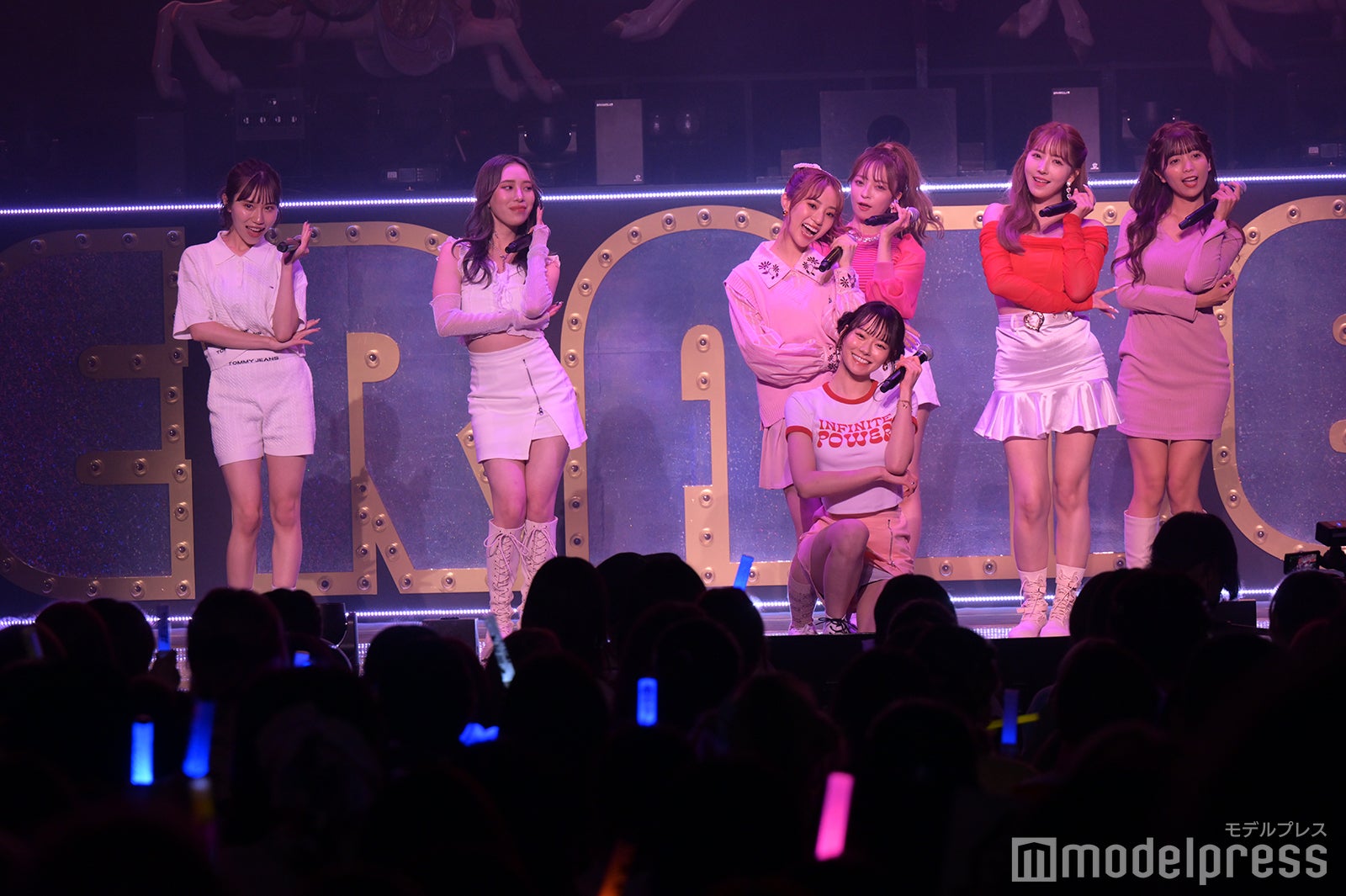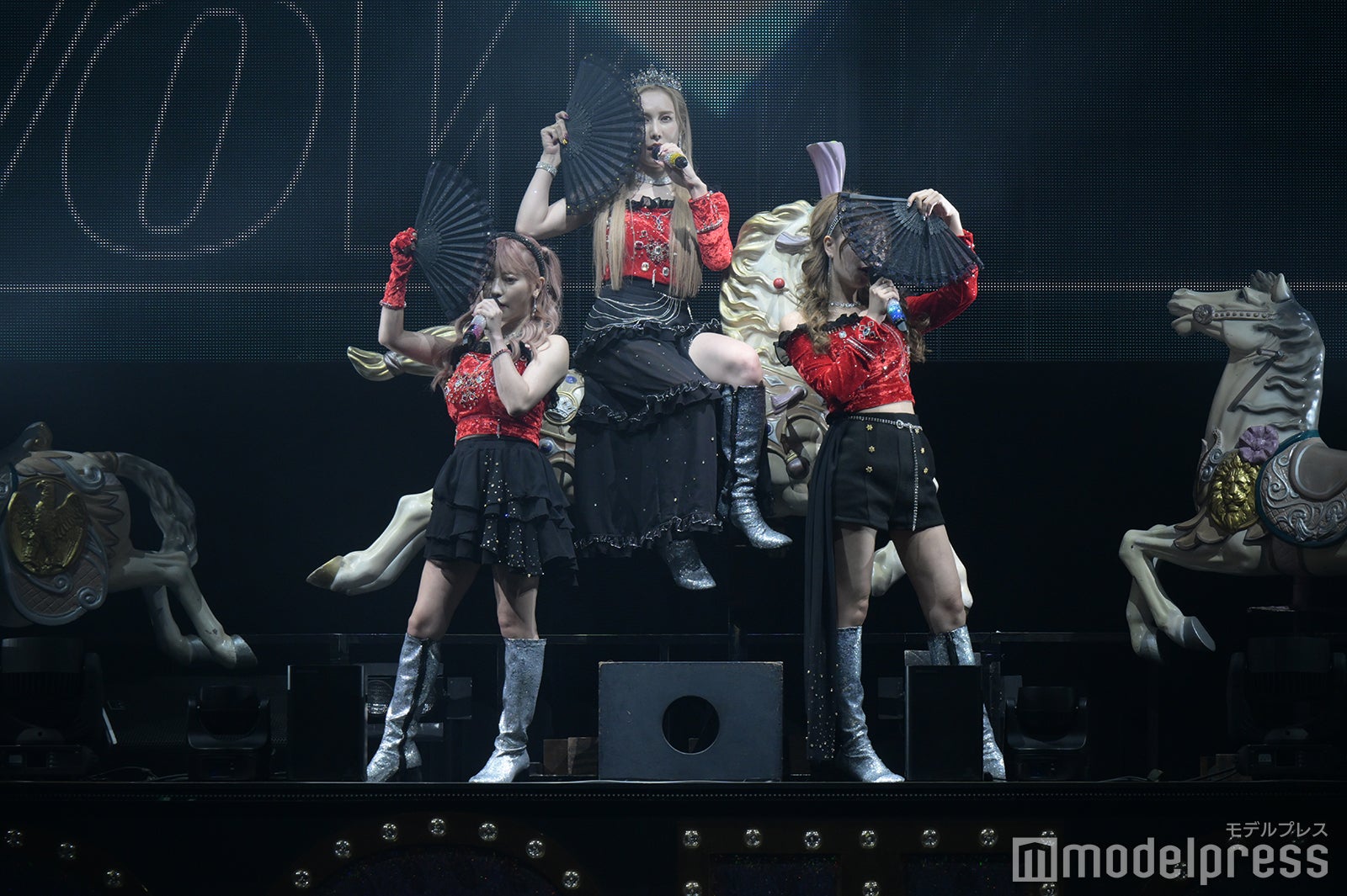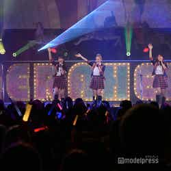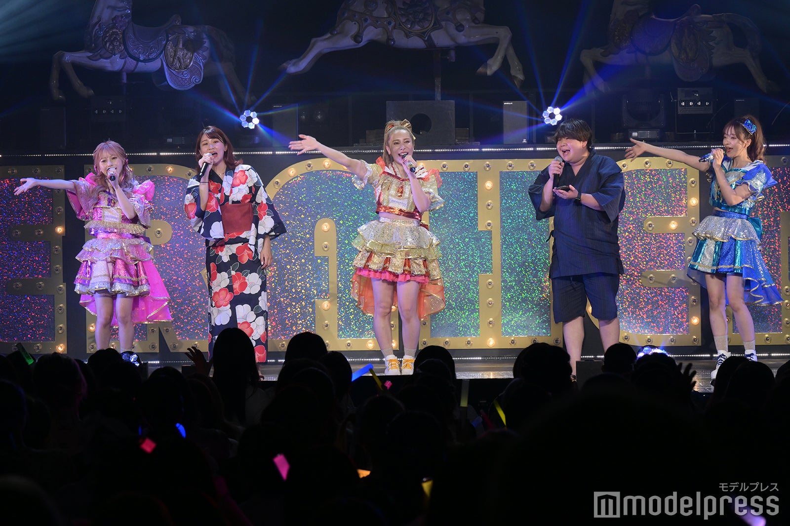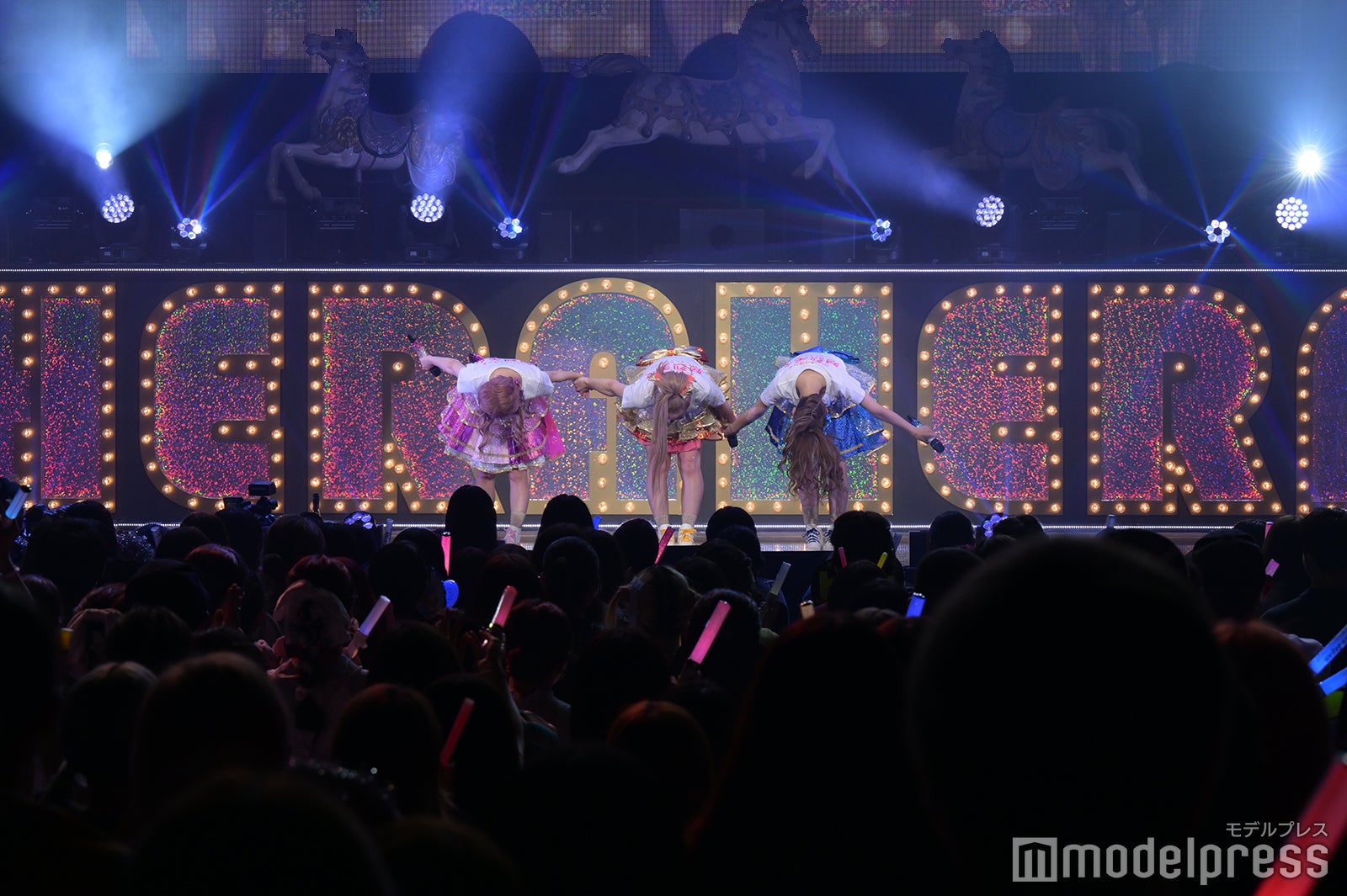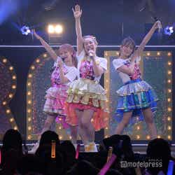 フリルをあしらったメンバーカラーの衣装をまとっていたメンバーだが、アンコールではコンサートTシャツを着用し登場。最後の挨拶では、さおりんがこれまでの活動を振り返り「笑われることもあった」と吐露した一方で「いくつになってもこの3人で頑張っていきたい」と力強く意気込み。ありしゃんはコンサート本番に向けてのダンスや歌への不安もあったとしたが、その経験から学んだこととして「失敗を恐れずにいろんなことに挑戦してほしい」とまっすぐに呼びかけていた。