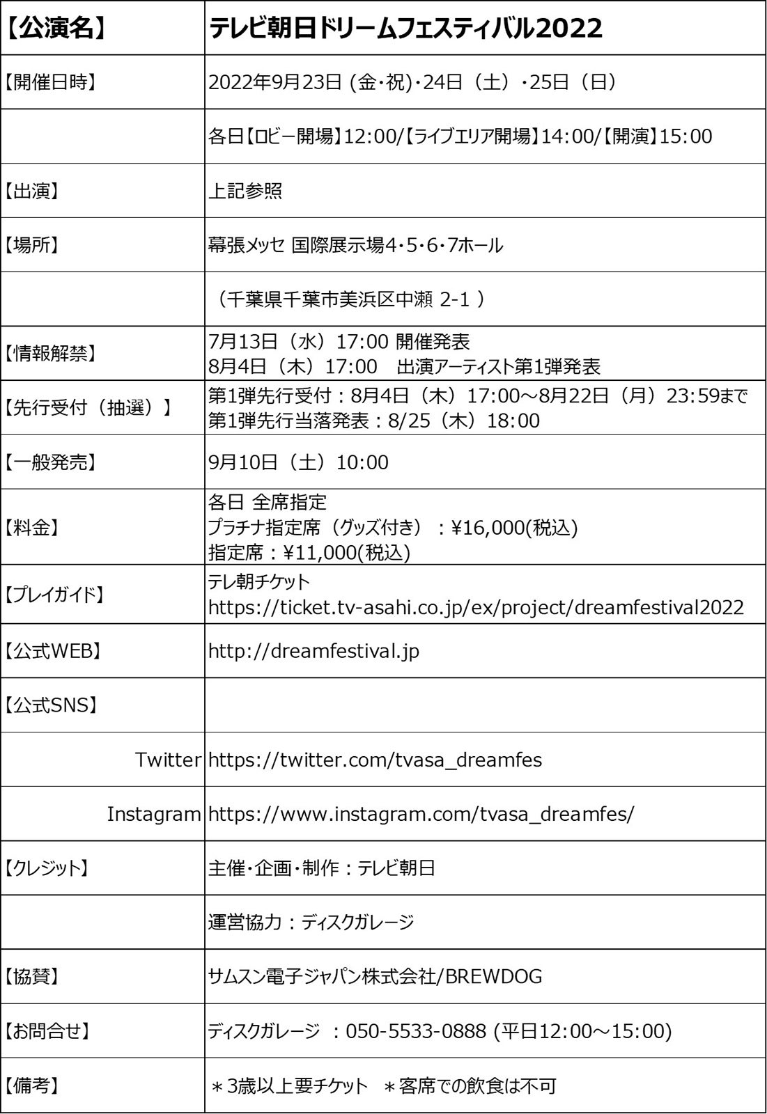 公演名:テレビ朝日ドリームフェスティバル2022開催日時:2022年9月23日(金・祝)、24日(土)、25日(日)