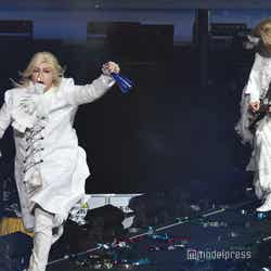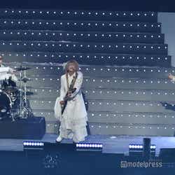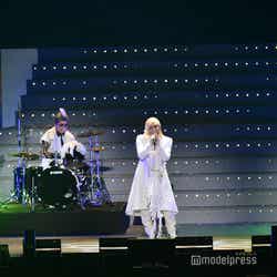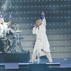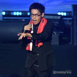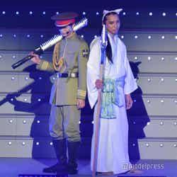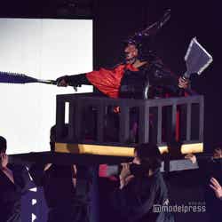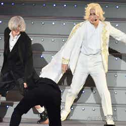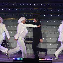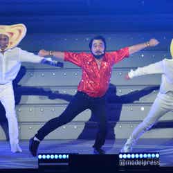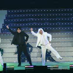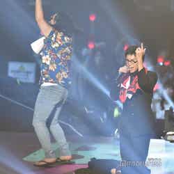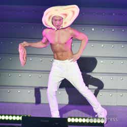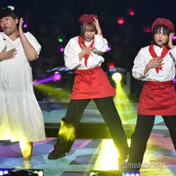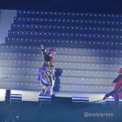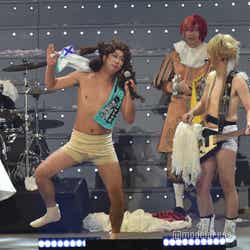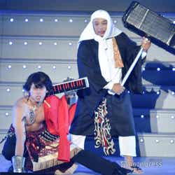 続いてのステージは、伝説の?パンクバンド「タイヤ・パンク」(ジェラードン)。ステージ上層部から銀一色の体にサングラスをかけた2人が現れ、ダンサーたちと軽快にメロディーを奏でた。かみちぃが階段を降りてキレキレのロボットダンスを披露するとさらに客席は熱狂し、「Friday night」 「Doki Doki Kiss」 の2曲をパフォーマンスした。