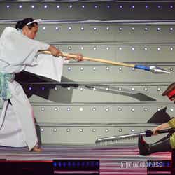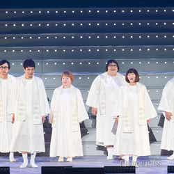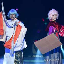 そして7曲目からは2.7次元アイドル「KOUGU維新」のステージ「第2章 南蛮編」がスタート。青とピンクの人気コンビ巻尺(KATA/空気階段・水川かたまり)と紙やすり(小橋宇宙/四千頭身・石橋遼大)が道に迷って2階席の後方から登場したり、新メンバーのジグソー(モグライダー・芝大輔)がお披露目されたほか、各キャラクターがバトルを繰り広げ見事な殺陣を披露。さらにサプライズで「KOUGU維新」たちの前に立ちはだかる敵である新メンバーノコギリとして錦鯉・渡辺隆が参戦。インパクト(空気階段・鈴木もぐら)の弟として、インパクトレンチ(モグライダー・ともしげ)が参加することも発表。