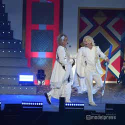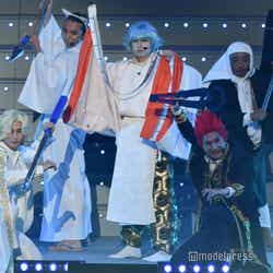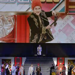「バーディーさん」(タイムマシーン3号)はカメラに本気のキスをして客席を唖然とさせたほか、「JKボンバーズ 」(インポッシブル)は花道を自転車で颯爽と駆け抜け、個性で圧倒。「スピーチの壁を越えろ!日本カベデミー賞」を映画化した「有吉の壁 カベデミー賞 THE MOVIE」から「MAPPA」(パンサー・尾形貴弘)も登場し、もう中学生とジェラードン・かみちぃが少年役として参加。ラストはメドレーのキャラがステージに集合し、全員で踊る大団円となった。