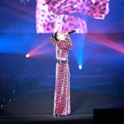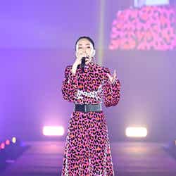 九州出身の歌姫・中島が、TGC 北九州に降臨。ピンクのヒョウ柄ワンピース、大振りフープピアスを身につけてライブステージに登場した。まずは、自身も出演した映画「NANA」(2005年)の主題歌「GLAMOROUS SKY」から。聴き馴染みのあるアッパーチューンで会場のボルテージは上昇。ランウェイトップで堂々と歌い上げた中島は、ビブラートを響かせた伸びやかな歌声で観客を虜にした。