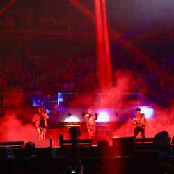 次のブロックには、12月30日にこの有明アリーナのステージで『THE RAMPAGE LIVE TOUR 2022 “RAY OF LIGHT”』の最終公演を行ったTHE RAMPAGEが登場。本ツアーのオープニングと同様「RAY OF LIGHT」で幕を開けると、メリハリの効いた演出で視線を奪っていく。川村壱馬の「Are you ready? Put your hands up!」の声を合図に突入したのは、5周年を迎えた彼らのデビュー曲「Lightning」。“ガンフィンガー”ダンスが特徴的な「LA FIESTA」や、新たな定番スタイルを確立したラテン調の「Fandango」「HEATWAVE」など、最高に熱い夏を共に駆け抜けたダンスチューンがステージを彩る。さらに、メンバーが多数出演している映画『HiGH&LOW THE WORST X』の主題歌「THE POWER」や、映画『HiGH&LOW THE WORST』の劇中歌「SWAG & PRIDE」、世界的ギタリスト・MIYAVIとの共演が実現した「ROUND UP feat. MIYAVI」など、トピックの多いTHE RAMPAGEの1年を象徴するような重厚感のある楽曲も披露。荒々しく炎が上がる中、説得力のある歌声と、大所帯で魅せるエネルギッシュなダンスがロック魂を体現し、観客を巻き込んでいく。一人ひとりが個人活動で実績を残しながらも、16人でのライブを大切に守り続けた彼らのブレない姿勢が、この10曲に詰まっていた。