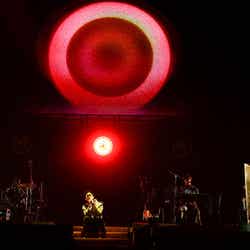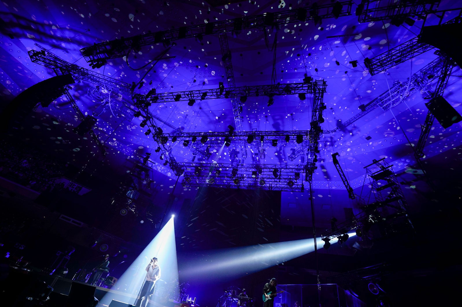 「こんにちは菅田将暉です。そしてバンドメンバーKNEEKIDSです。まさかの日本武道館でございます。ありがとうございます。俳優業だとこれだけの人の前に立つことがなかなか無いので、とても不思議です」と、初の日本武道館でのライブを噛み締めた。続いて披露したのは、「愛と右脳」、「りびんぐでっど」、そして「キスだけで」では、ステージセットに置かれたベッドやソファを使いながら、色気のあるパフォーマンスを披露。モニターにもその様子が映し出され、まるで部屋の中にいるような演出で魅了した。