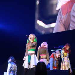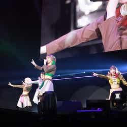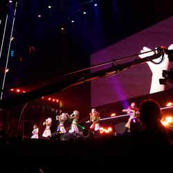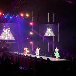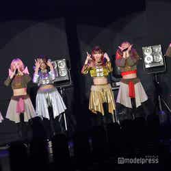 パフォーマンス後のMCトークでは、新メンバーのキノが「こんな大きな舞台でやらせていただけるなんて」と喜びを言葉に。別れの挨拶後もステージでファンに手を降っているとMCを務めるお笑いコンビ・NON STYLEの井上裕介が「はよ帰れ!お前たちの先輩が待ってるんだよ」とツッコみ、会場の笑いを誘っていた。