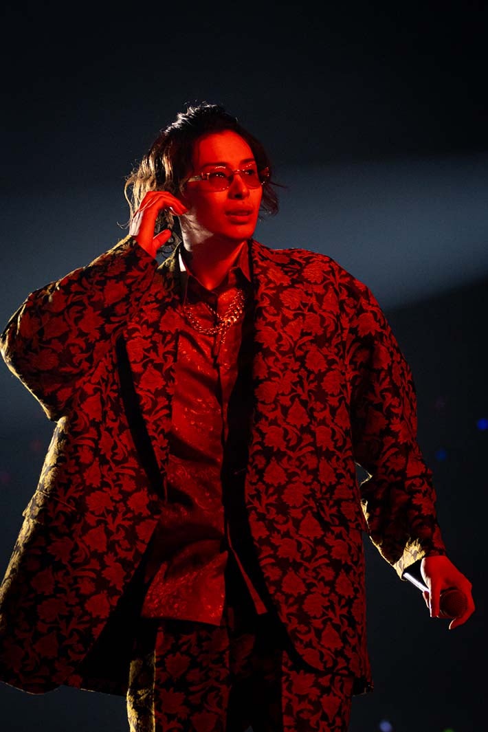 Repezen Foxxのトラックメイカー・チバニャンのコールアンドレスポンスを皮切りに開幕した同ステージ。DJ社長の「日本で一番デカい宴会でも始めましょうか」という一声をはじめに、メンバーたちが祝杯をあげた。「こんだけ会場デカいとテンション上がるぜ!」と声を張り上げるテンションMAXのDJ社長や、DJ銀太が「ランウェイ楽しい」と花道でのパフォーマンスに興奮するなどメンバー全員が国立代々木競技場 第一体育館という大きなステージに立てたことに喜びを滲ませていた。