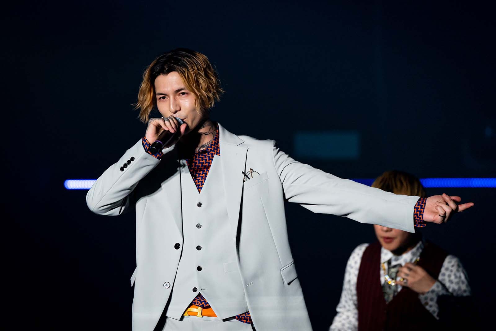 「バスターコール」をはじめとする人気曲を次々と投下し、熱いパフォーマンスで会場を温めると「YouTubeはここまで!」とYouTubeによる生配信の終了を説明。「お金払って会場まで来て良かったって思えるくらい盛り上がろうぜ」と呼びかけ、“テンション爆上がりソング”「あげほい」のパフォーマンスで観客のボルテージを一気に上昇させた。