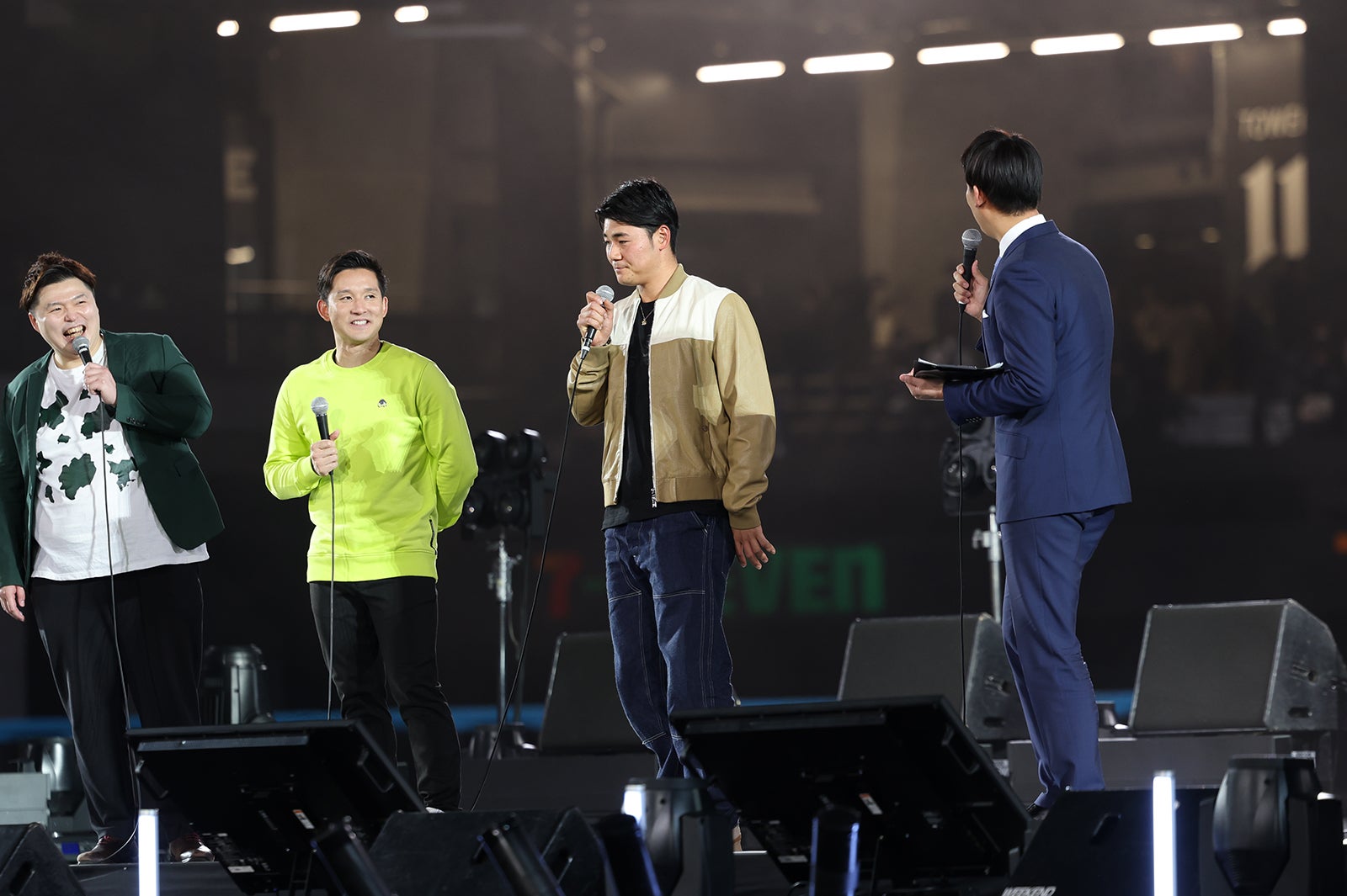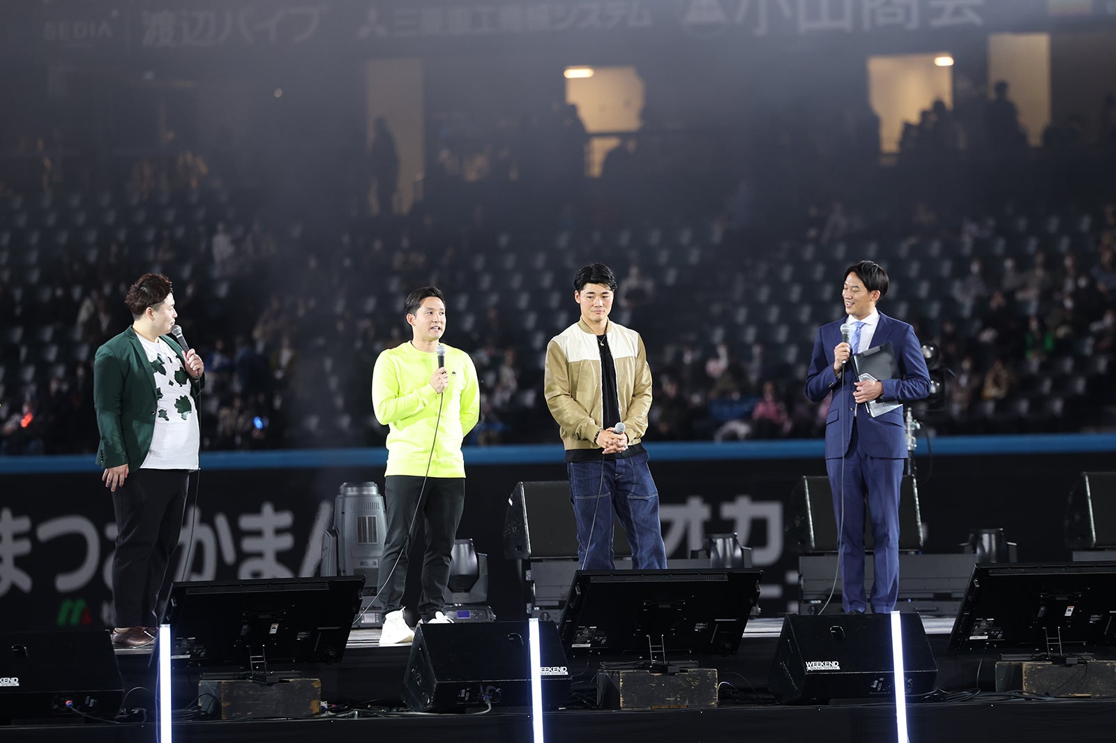 また、スペシャルゲストのEXITはTOWER 11(タワー・イレブン)や七つ星横丁などを巡り、ファイターズOBの杉谷拳士も登場してエスコンフィールドの魅力を紹介。女子カーリングチームのロコ・ソラーレ、函館市出身のGLAY、明石家さんまからメッセージが寄せられ、イベントに花を添えた。