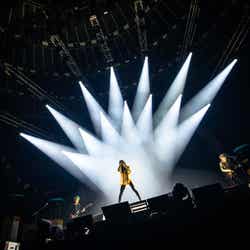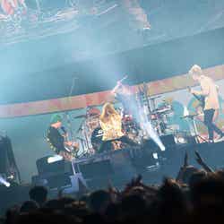 一曲目の「美しい日」から「ひたむき」と彼らのライブアンセムともいうべき最強ロックチューンを連発。渋谷のエモーショナルな歌声とエネルギッシュな動きに煽られ、観客も拳をあげて手を振り会場全体が一体となっていった。MCでは、この日のジャンルを超えた多彩なラインナップについて“異種格闘技の日”と独自の言葉で表現。