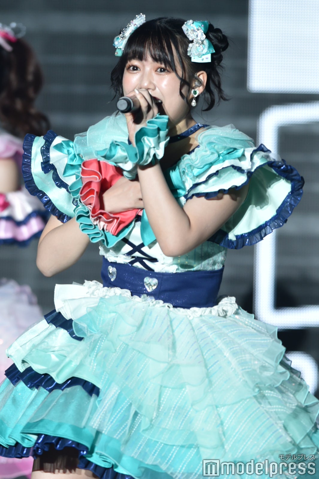 2曲目の「かわいいメモリアル」では、ランウェイへ移動しながら胸キュンな仕草やセリフで観客を魅了。ほっぺハートなど可愛らしい振り付けも見せ、会場を盛り上げていた。