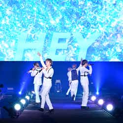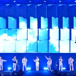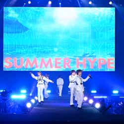 続く「SUMMER HYPE」では、それぞれランウェイに散らばり会場を煽るメンバーたち。松井利樹はステージの先端に座って観客に接近し、ファンからは大きな歓声が上がった。福岡県出身でもある松井は「こうやって北九州に帰って来れて嬉しく思います」と4年ぶりの出演に歓喜。「最後まで一緒にこのイベントを楽しんで帰りましょう」と呼びかけた。