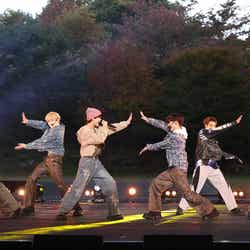 同グループは、まず「DIVE」で一気に観客を引き込み、続いて「Unlimit」を披露。一糸乱れぬ息ぴったりのパフォーマンスで盛り上げた。MCに入ると、それぞれ個性あふれる自己紹介を行い、山梨県出身の田中笑太郎の「山梨ただいま~!」という掛け声でデビュー曲「Brand New Day」のパフォーマンスへ。「Come Over」では、寺尾香信の「これから一緒に幸せな時間過ごしていかない?」という一言から始まり、手を差し出すような振りの際には「こっちおいで」「大好きだよ」と甘いセリフを連発した。