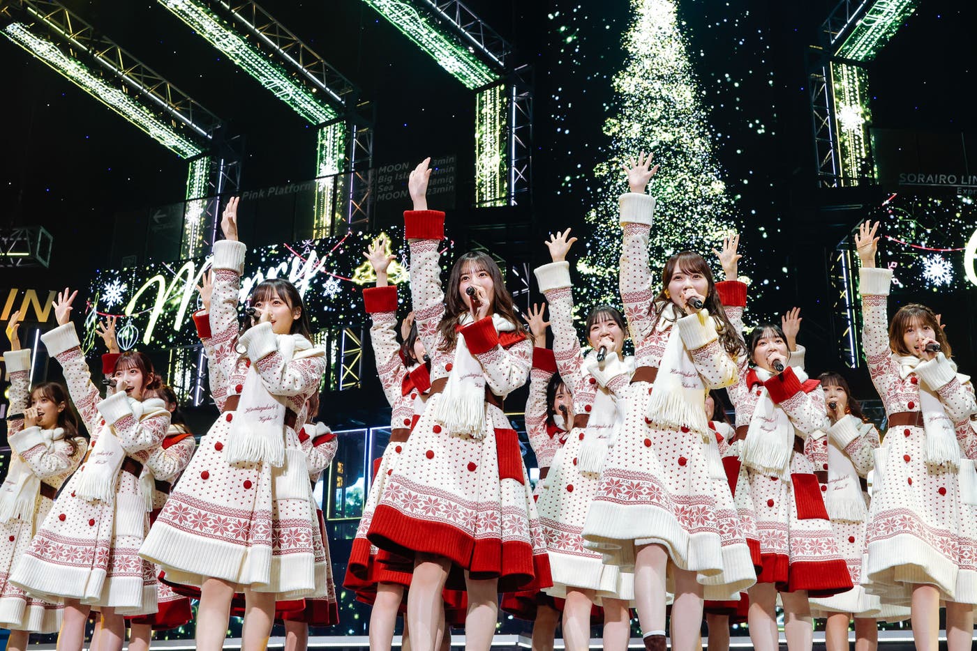 同公演は、8月〜11月にかけて行なわれたアリーナツアー「Happy Train Tour 2023」の追加公演。ツアー全体では、全12公演で計14万人を動員、Kアリーナ横浜の2日間だけでも計4万人を動員。Kアリーナ横浜初日公演の9日には、一期生の潮紗理菜の卒業セレモニーも実施した。粋な演出でKアリーナが“夜空の下”に