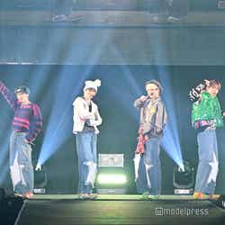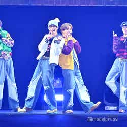脚を揃えると星形になるパンツのお揃い衣装で登場した同グループ。耳付きの帽子や、ポップなデザインのジャケットなど個性的な可愛らしいスタイリングとなっていた。「盛り上がっていきましょう~!」という掛け声で「Unlimit」からスタートし、デビュー曲「Brand New Day」で爽やかにステージを彩った。それぞれ自己紹介を終えた後、ランウェイを歩いた関西出身の平本健は「僕の地元の関西で、初めてのランウェイ歩かせていただいて本当に楽しかったです。ありがとうございます」と喜びを表現。全身をブラックで統一し、囲み目メイクも施したクールなスタイリングでランウェイを歩いた大久保波留は、ライブではクマのぬいぐるみを身に着けた可愛らしい衣装にチェンジ。「イメージをガラッと変えられたランウェイだったかなと思います」と振り返った。