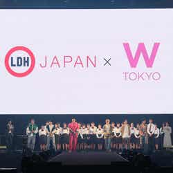 子どもたちの笑顔をたくさん作りたいとの願いから結成されたEXILE B HAPPY。メンバーは、EXILE TETSUYA(EXILE/EXILE THE SECOND)、関口メンディー(EXILE/GENERATIONS)、小森隼(GENERATIONS)、浦川翔平(THE RAMPAGE)、吉野北人(THE RAMPAGE)、木村慧人(FANTASTICS)、中島颯太(FANTASTICS)の7人で構成されている。この日は浦川・中島を除く5人で出演し、THE RAMPAGEの陣も会場に駆けつけた。キッズダンサーたちに加え、「W TOKYO×LDH JAPAN 地方創生プロジェクト」第7弾として、地元・近畿大学附属和歌山高等学校ダンス部ともスペシャルコラボレーション。1曲目の「MORNING SUN」は子どもたちと目を合わせながら、笑顔全開のパフォーマンスを披露した。