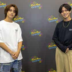 今回は、グループの5周年を締めくくるにふさわしい、これまでの楽曲を打ち上がる花火とともに楽しめるイベント。1万3,000発の花火が楽曲とシンクロしながら美しく打ち上がった。なお、会場外でも楽しめる要素が多数で、フードコートや櫓DJエリアなど細かいところまで2人のアイデアが込められているという。デビューからのミュージックビデオが場内に流れる中、会場全体がパッとライトで照らされると、ファンから歓声が。後方に設置された2つのステージから永瀬廉と高橋海人(※「高」は正式には「はしごだか」)がそれぞれ登場し、「なにもの」で早速盛り上げながら、バックステージ側からメインステージまで二手に分かれて外周を歩き「名もなきエキストラ」で会場全体を一体にする。