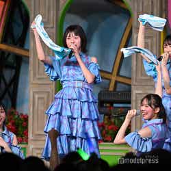 次に披露したのは、高橋がセンターを務める11thシングルのカップリング楽曲『錆つかない剣を持て!』。可愛らしさ溢れるステージから一変し、キレのあるパフォーマンスとクールな表情でギャップを見せた。続く三期生楽曲『青春ポップコーン』では、弾けるような振り付けとフレッシュな笑顔でキュートにジャンプ。最後の『この夏をジャムにしよう』ではタオルを使ったパフォーマンスで大きく盛り上げ、三期生らしく元気に初の単独ステージを締めくくった。