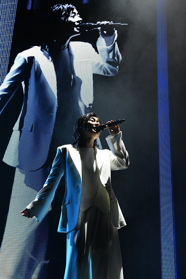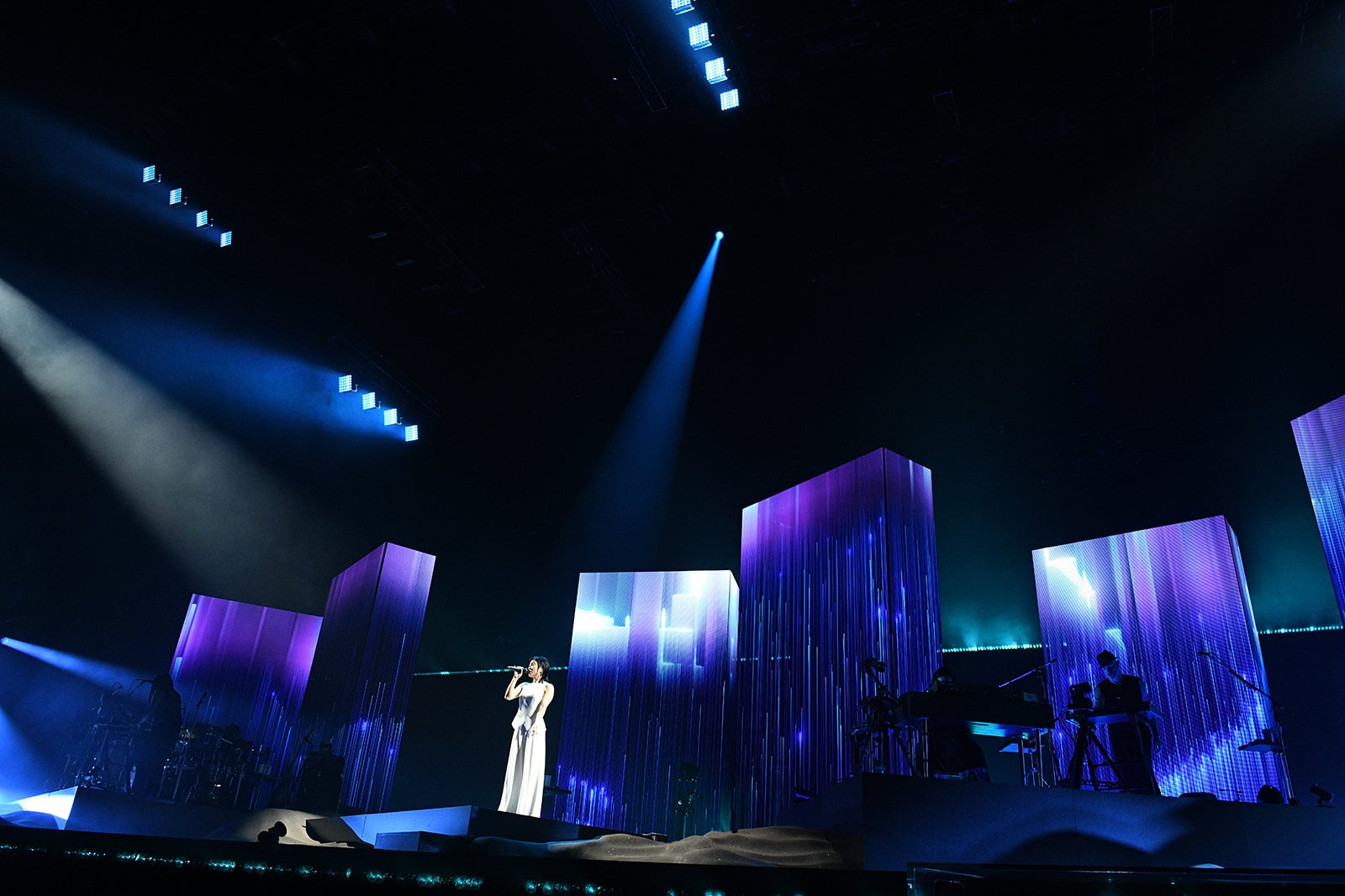 続いて、「Letters」「Wait & See 〜リスク〜」「In My Room」と披露し、続くMCでは『みんな、やっと会えたね!今日はゆっくりしていって』とファンに呼びかけ。「光(Re-Recording)」では、赤く強さのこもった照明と共に力強い姿を垣間見せながら、続いて「For You」と「DISTANCE(m-flo remix)」をメドレーで披露。「traveling(Re-Recording)」では、冒頭のイントロで観客のボルテージは一気に上がり、サビではコール&レスポンスも。