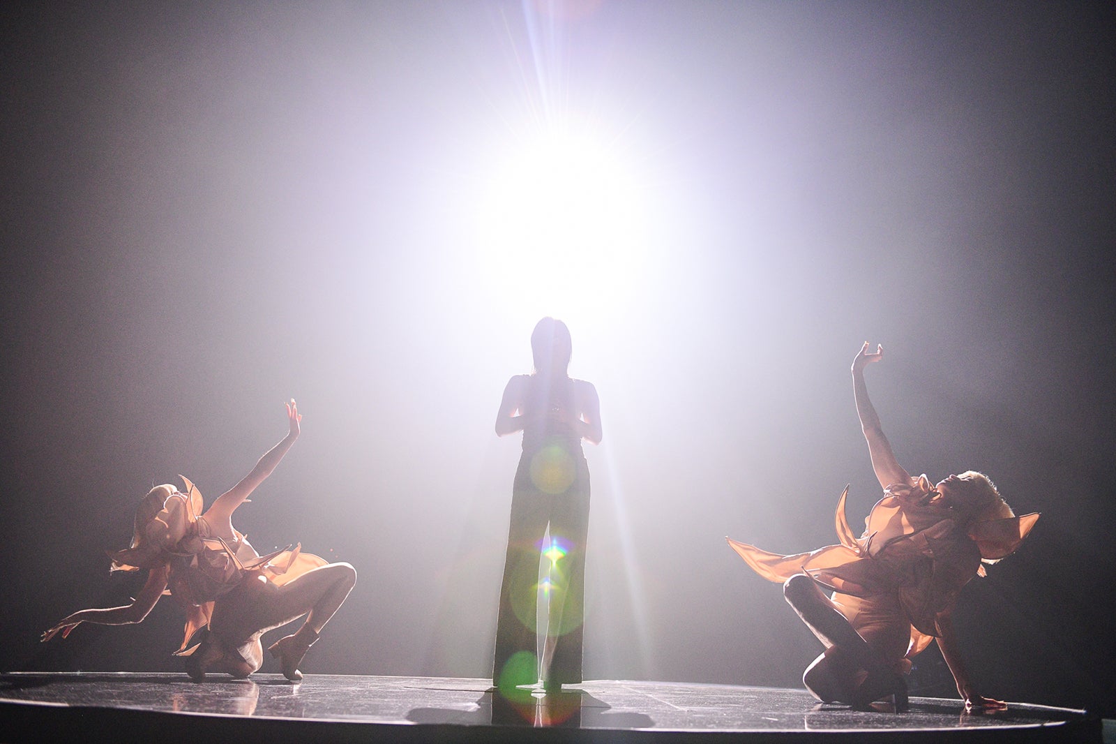 「First Love」ではより客席に近いBステージに移動し、周辺をファンに囲まれながらのパフォーマンスも印象的なものに。「Beautiful World」「COLORS」「ぼくはくま」「Keep Tryin’」「Kiss & Cry」と披露すると、「誰かの願いが叶うころ」で幻想的な演出と共に歌の世界に引き込まれたかのようなムードで、前半パートが終了した。