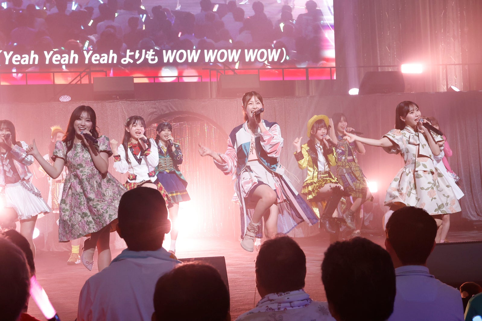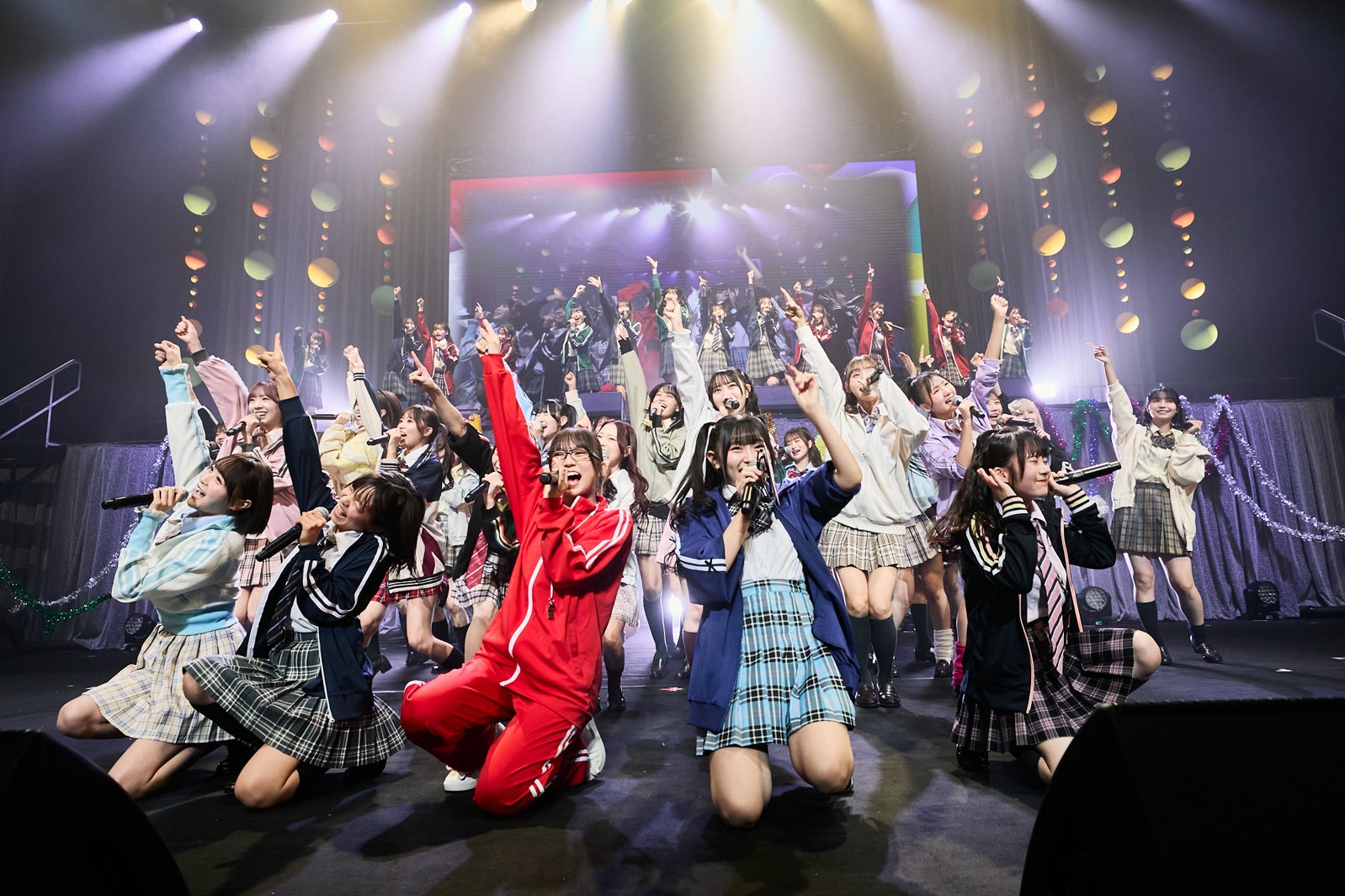 「12秒」ではゲストを含め全員がステージに集合し、本編ラストとなった「キスは待つしかないのでしょうか?」では、観客からの「はなちゃん」コールが響き渡り、松岡は堪えきれず涙を流す場面もあった。