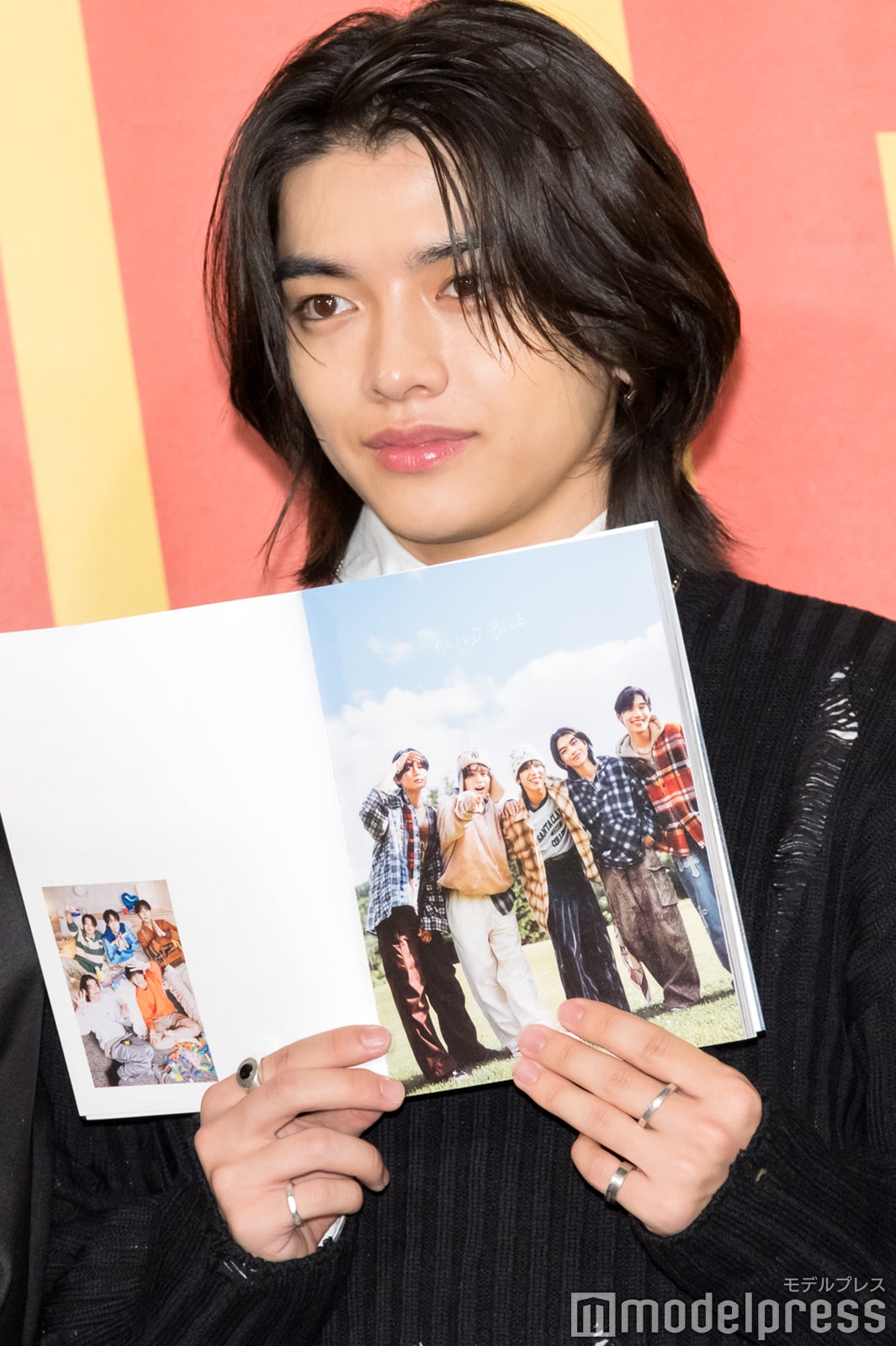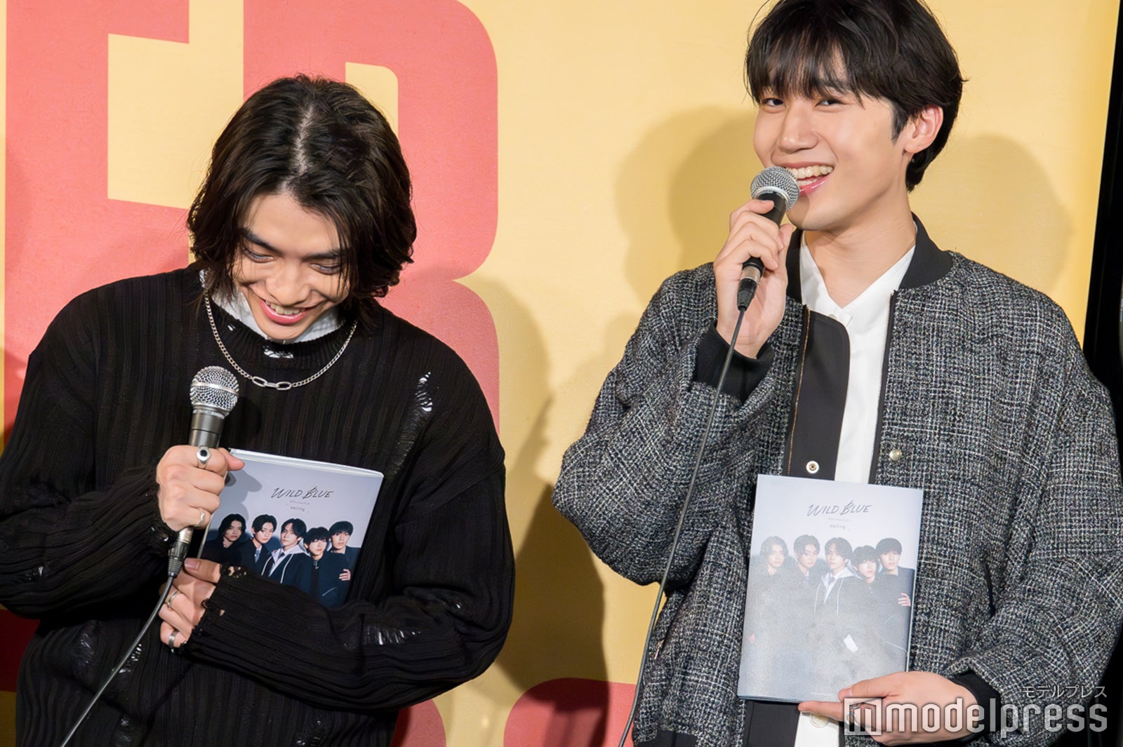 WILD BLUEがデビューショーケースを行った11月11日に刊行された同書は、デビュー前の彼らを捉えた初々しい写真に加えて、個性豊かな5人のプロフィールやグループの結成秘話など、WILD BLUEの魅力を深掘りしたインタビューページも詰め込まれた1冊。雄大な景色と美しい青空が広がる北海道で、爽やかな彼らの姿だけでなく、みんなでアイスクリームを食べたり、羊と遊んだり、部屋でパーティーをしたりといった素顔が盛り沢山の内容となっている。オフィシャルブック発売の心境を聞かれた山下は「素直にすごく嬉しかったですね」とにっこり。続けて「香盤があるじゃないですか。何時入り、とか。『WILD BLUE様何時入り』というのを見て、『撮影だ』『これがWILD BLUEだ』と実感が湧いてきました」と振り返った。