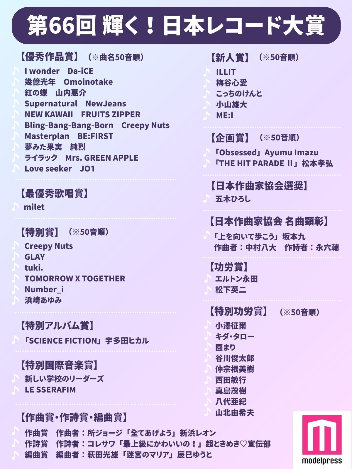 「第66回輝く!日本レコード大賞」各賞受賞者&曲が決定【一覧】