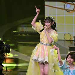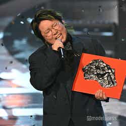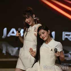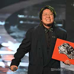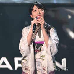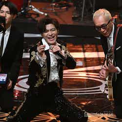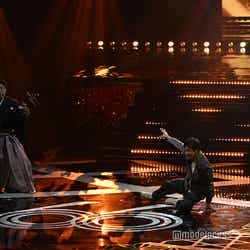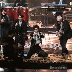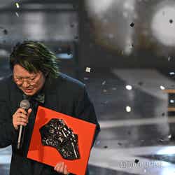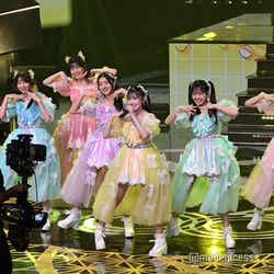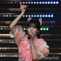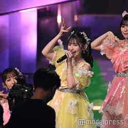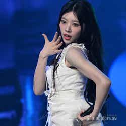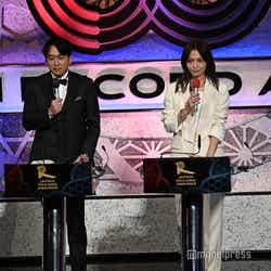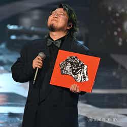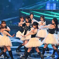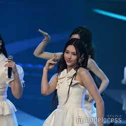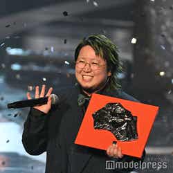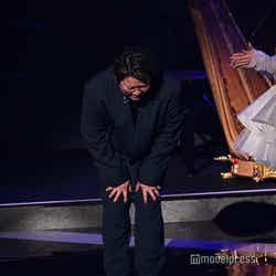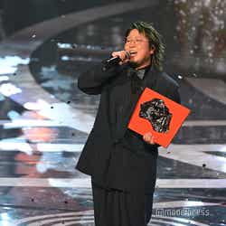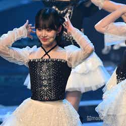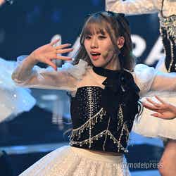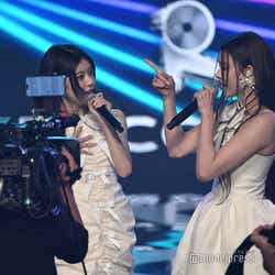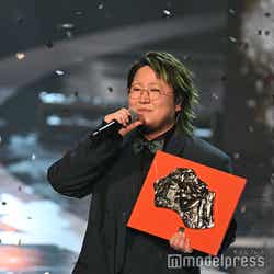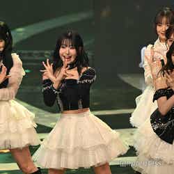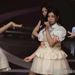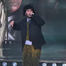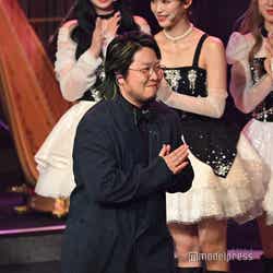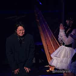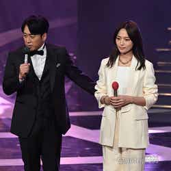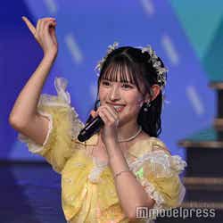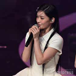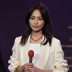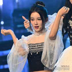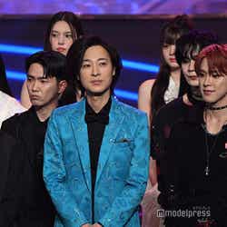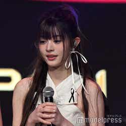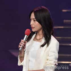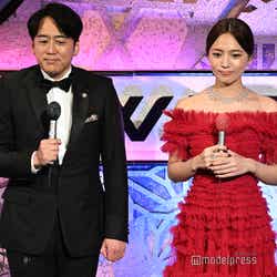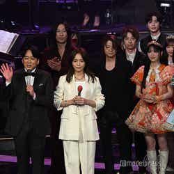 ホワイトのセットアップから印象をガラリと変えた赤いドレス姿で登場した川口。チュールのフリルが何段にも重ねられ、オフショルダーからのぞいた美しいデコルテにはネックレスが輝いた。優秀作品賞を受賞したMrs. GREEN APPLEのパフォーマンスのタイミングでの衣装チェンジとなったことから、川口は「若井さんの髪色に合わせて(笑)」と若井滉斗の赤い髪色に合わせてお茶目にコメントしていた。
