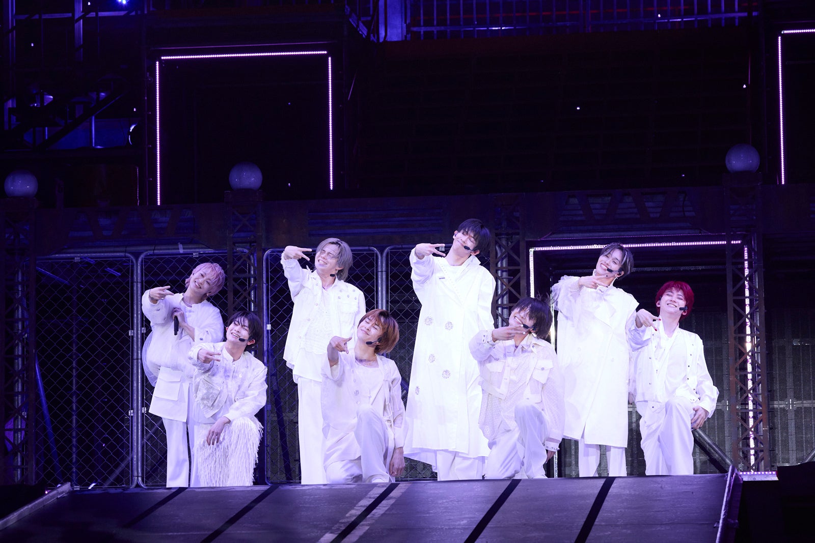 MCでは、リョウガが「ちょっと難しいな。触れるかどうか…」と悩みつつ、ユーキの赤髪について触れる場面も。ユーキが「俺に近づくと火傷するぜ!」と決め台詞を言うと、メンバーの笑いとともに、8号車から黄色い歓声が飛んだ。“近況トーク”では、アロハがリハビリ中のランニングで、爆速で走るアスリート風の人に負けないようについて行っていたというエピソードを明かし「良いリハビリでした!」と報告。カイは、久々にメンバー全員が集まった時に「楽屋がこんなにうるさかったんだ!」と思ったことを口にした。これにハルが「うるさかったね〜」と共感したが、リョウガからは「お前だよ!」とツッコミが。続けてリョウガが「TikTok見てた時に流れてきたんだけど、お前ドラマの現場でも変顔してるんだな。何してるんだ!」と投げかけると、ハルは「そういう風に育てられてきたんだもん。この8人のせいだよね!?」と愛嬌たっぷりに返答し、会場から拍手が。リョウガは、8号車を見渡し「それで言うと、お前らも責任あるからな!メンバーなんだから!」と軽快なトークで会場を笑いの渦に巻き込んだ。