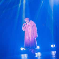 タイトルの「LOOK UP」は、ソロステージのために制作されたメイン曲の「The sky make me slow」からインスピレーションを受け考案。ステージは、そのキーとなる1曲でスタート。メロウなラップをスタンドマイクを使ってパフォーマンスし、独自のムードを作り上げる。今回は特技であるドラムステージを用意し、ムーディーで心地よいビートを刻み観客を引き込んだ。続く初披露のオリジナル曲「noise」では、バックダンサーと共にしなやかなダンスを披露。田島のダンススキルを存分に発揮したクールなパフォーマンスでMINI(ファンネーム)を魅了した。