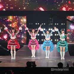 紹介映像が流れ、大きな歓声に包まれながら登場した同グループ。歓声に応えるように「すきっ!〜超ver〜」でファンへの愛を歌った。それぞれ自己紹介を終えた後、2曲目「ちょま」を圧巻の歌声で力強く歌い上げ、最後に「最上級にかわいいの!」でキュートに締めた。