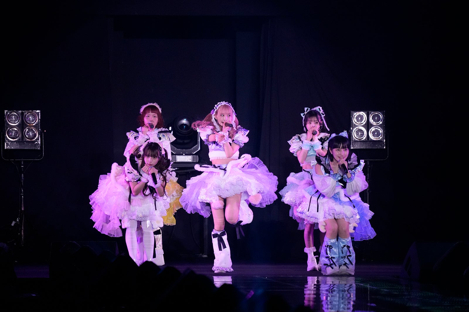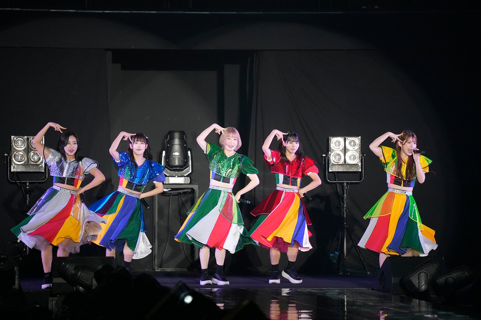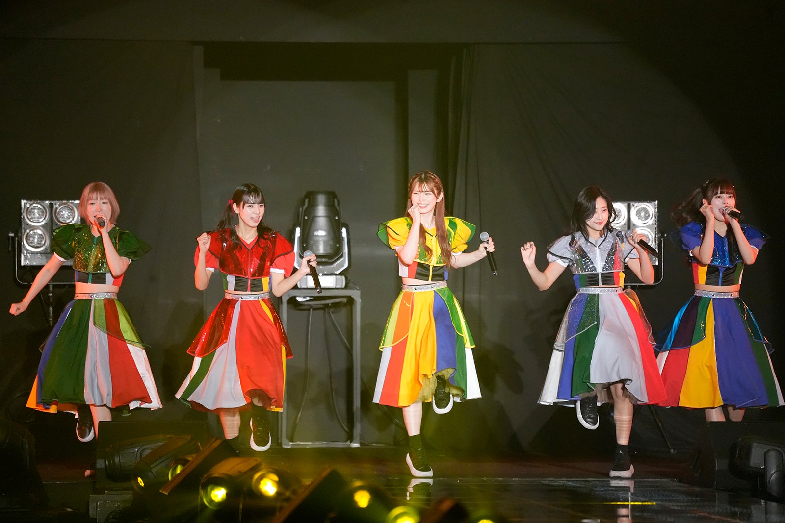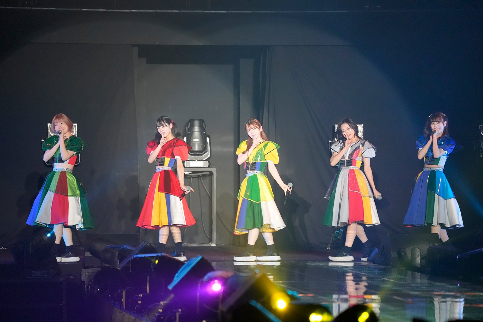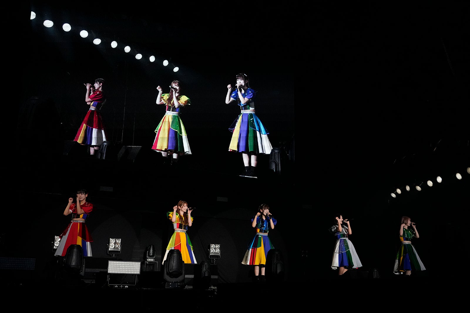 TBS系バラエティ番組「水曜日のダウンタウン」(毎週水曜よる10時~)から誕生したアイドルグループ・豆柴の大群は、プロデューサーの安田大サーカス・クロちゃんが作詞した代表曲「りスタート」からスタート。アイナが振り付けを手掛けた「りロード」では、間奏にメンバーがファンとじゃんけんをするお決まりのコーナーが。モモチ・ンゲールがファンとじゃんけんをし、「勝ったー!」と喜ぶ姿を見せた。「豆柴の大群 -お送りするのは人生劇場-」ではメンバーがセンターステージに現れ、ファンへ手を振って笑顔でステージを後にした。