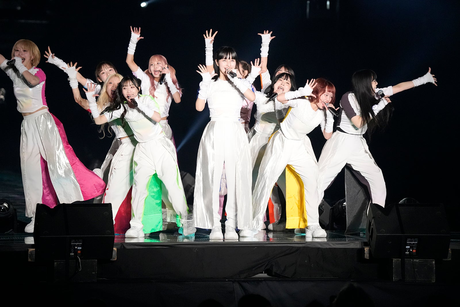 グループのトリを飾った11人組アイドルグループ・GANG PARADEは、前面が白、背面がそれぞれのメンバーカラーになっている特徴的な衣装で登場。1曲目には「相場は6とか7人だよね メンバーさすがに多いね 二桁超えると覚えるの大変」など、大人数グループならではの思いが詰まったユーモア溢れるグループ紹介ソング「So many members」を披露し、会場を盛り上げた。さらに「赤ちゃん」「ROCKを止めるな!!」でもメンバーのわちゃわちゃした仲睦まじい姿やファンとの一体感を見せつけた、ステージを締めくくった。