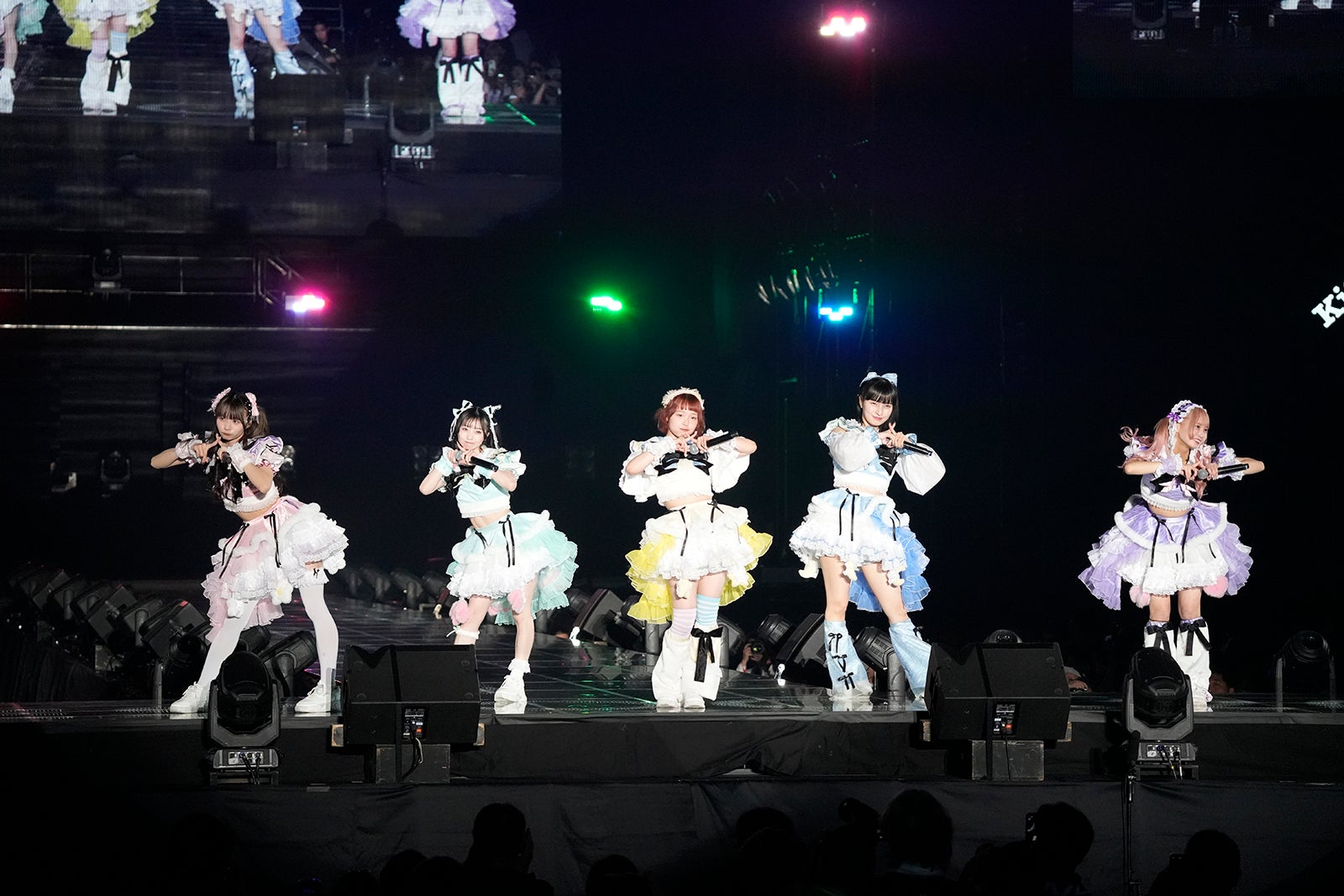 続いて、5人組女性アイドルグループ・KiSS KiSSが登場。キュートな衣装で現れ、「KiSS KiSS SUNSET」をパフォーマンスすると、会場の雰囲気をガラリと変えた。キャッチーな振り付けのメンバー紹介ソング「かわいいなんて言わないで」、「キスキスキス」と連呼するサビが特徴的な「KiSS KiSS KiSS」では、ファンの大きなコールがステージを盛り上げた。ラストは、可愛いらしいアイドルソング「楽園きゅ~とぴあ◆」(※◆はハートマーク)で締めくくった。