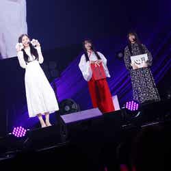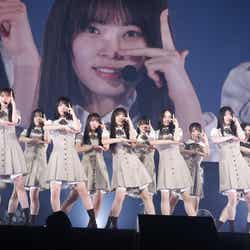 長嶋は“凛桜”という名前や春が好きな季節であることを説明した後、観客と一体になって会場をピンクのペンライト一色に。増田はコンピューター部であることからユニークな“エアタイピング”をしながら自己紹介、森平は緊張で言葉を詰まらせつつ、憧れだという4期生・賀喜遥香への思いを伝えた。