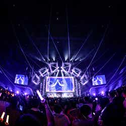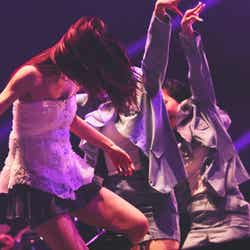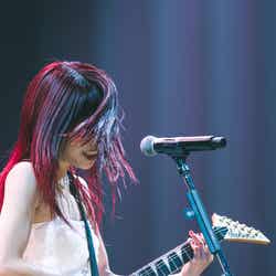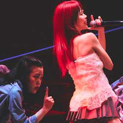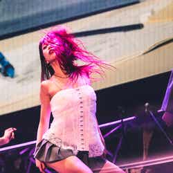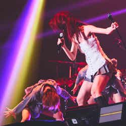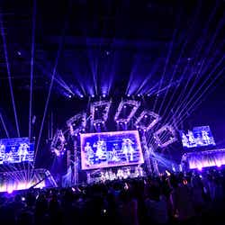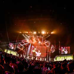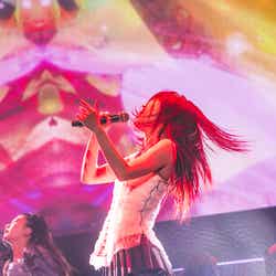 SKY-HI率いる「BMSG」とちゃんみながタッグを組んだガールズグループオーディション「No No Girls」から誕生したHANA。MCの南海キャンディーズ・山里亮太から「今年4月に待望のデビュー。情熱的な歌とダンスで日本中に感動を与えてくれました。オーディションから生まれた最強の7人が登場です!」と紹介されると、ステージ中央から登場。ダメージデニムがクールな衣装に身を包み、プレデビュー曲『DROP』で幕を開けた。低音で突き刺すラップを繰り出した楽曲で圧倒すると、最後のセンターを飾るYURI(ユリ)の指先が余韻を残し、5次審査の課題曲でもあった『Tiger』へ。NAOKO(ナオコ)やCHIKA(チカ)のフェイクや、7人ピッタリと揃ったダンスブレイク、1人ひとりの鋭く見つめる表情で、NAOKOが「皆さんぶち上がる準備はできてますか?」と煽った通り、会場を熱狂の渦に包んだ。