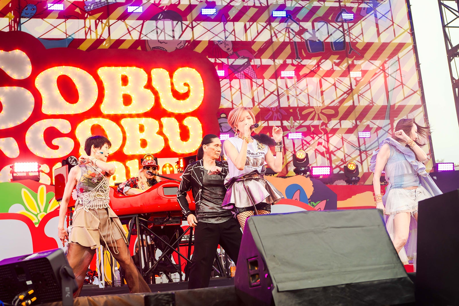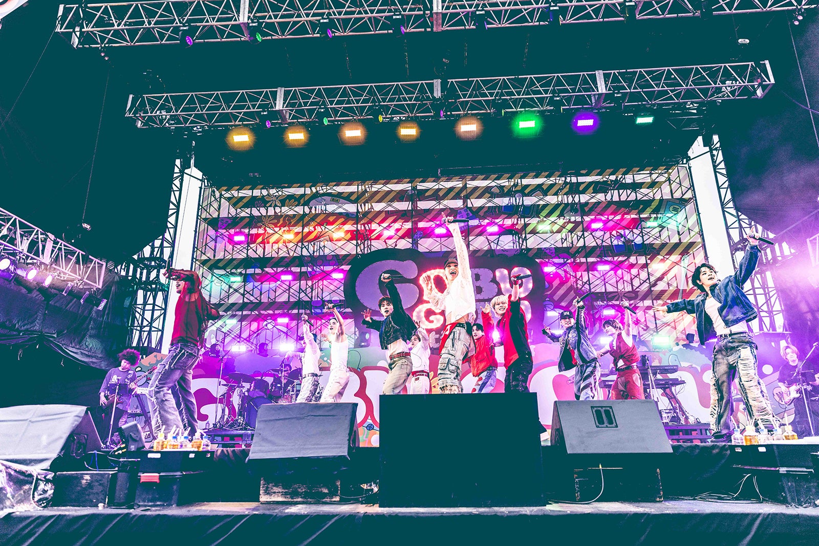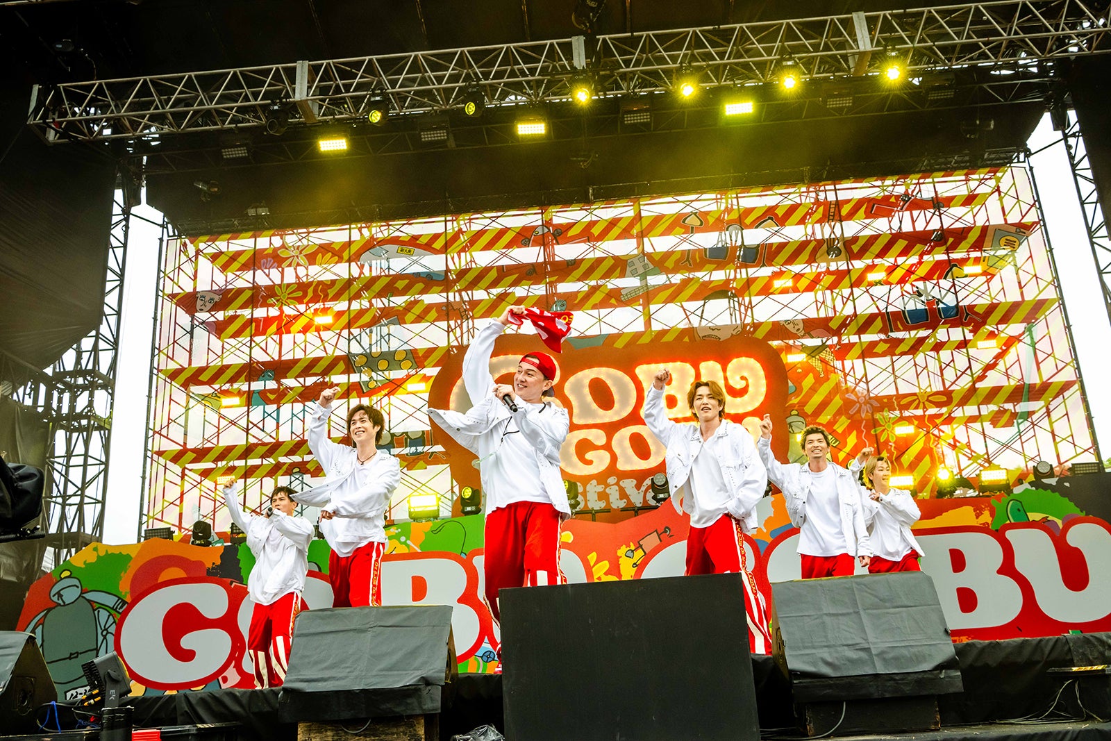 DAY1のトップバッターは昨年デビュー20周年を迎えた木村カエラ。満員御礼の客席を見渡し、「短い間だけど、みんな一緒に楽しもう!」と呼び掛け、疾走感漂う「TODAY IS A NEW DAY」から盛り上がる。MCでは「浜田さんを見るとすごく元気をもらう、不思議だよね」と語り、浜田の息子であるハマ・オカモトにバックバンドでベースを弾いてもらったこともあってか、「2人とも本当に素敵で、親子でフェスに出るとかすごくない?」とリスペクト。その後も、みずみずしいメロディがもみじ川芝生広場に広がった「Sun shower」や、「リルラ リルハ」「Magic Music」とアッパーなナンバーで沸かせ、「Butterfly」では多くの人が手を振り歌った心温まる風景を演出。今年の『ごぶごぶフェス』の幕開けを飾った。GENERATIONSは、初っぱなの「Two Steps Back」からクールなダンスパフォーマンスで魅了。矢継ぎ早にぶち込んだワイルドな「Diamonds」、パフォーマー陣のソロパートでも圧倒した「Hard Knock Days」と一気に畳み掛ける。「EVERGREEN 2.0」では巨大なセットの端から端まで横断し、生粋のエンターテイナーたるたたずまいにあっという間にとりこになってしまう。「同じ地元・尼崎の大先輩、浜田さんのフェスにずっと出たいと思っていた」と数原龍友。初披露となった小森隼プロデュースの新曲「MY GENERATION」は、ASIAN KUNG-FU GENERATIONの後藤正文(Vo,Gt)作詞・作曲で、「踊れる邦ロック」をテーマに制作に挑んだビートに自ずと体が動き出す。後半戦は「SUMMER TIME LOVE」を皮切りに「AGEHA」や「Y.M.C.A.」と続け、トドメは着ていたTシャツをタオル代わりに振り回した「NOW or NEVER」。 底抜けに楽しい全9曲で存分にアピールした。