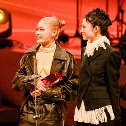 21日は40部門にわたり最優秀賞や功労賞などを表彰。Mrs. GREEN APPLE、FRUITS ZIPPER、宇多田ヒカル、藤井 風、YOASOBI、NewJeans、Creepy Nutsなど名だたるアーティストが受賞を果たした。「最優秀ジャパニーズソングアーティスト賞」を受賞したMrs. GREEN APPLEはモノトーンのスーツ姿に身を包みステージ上に登場。トロフィーを授与された大森元貴は「曲作りが僕は好きなので、これからも僕ら自身が楽しんでお届けできる楽曲を制作していけたらいいなという風に思っております」と今後に意気込み。さらに2024年には5ヶ月連続で楽曲をリリースするなど「刺激的な日々を送らせてもらっています」と多忙な日々を過ごしていると話した大森は「チームに本当に支えてもらっているので、楽しく音楽させてもらっているのはチームの皆さんありき」「デビュー10周年なので、まず今年とにかくたくさんのファンの方々に感謝の気持ちを届けたいということで頭がいっぱい」とスタッフチームやファンへの感謝を伝えていた。「最優秀国内ダンスポップアーティスト賞」「最優秀ダンスパフォーマンス賞」と2部門を受賞した新しい学校のリーダーズは「MUSIC AWARDS JAPAN」のロゴやトロフィーに合わせ、全身真っ赤のセーラー服で登場。SUZUKA(スズカ)は「言葉にできない感情だったりニュアンスを踊りに乗せて表現するという気持ちよさというのはたまらないものでございますので、これからもこの踊りを通して、ファンの皆さんや世界中の皆と一体感を生み、少しでも楽しい時間が増えるといいなと思います」、MIZYU(ミジュ)は受賞曲『オトナブルー』がコロナ禍より前にリリースされた楽曲でありながら「2023年にすごくモテ期が到来して、そこからすごく新しい学校のリーダーズというグループとともに聞いていただき、知っていただくすごくきっかけとなった大切な曲」と説明。「この曲がなかったらダンスがないし、私たちも踊る楽曲があることにすごく感謝しながら、毎日歌って踊って世界中を飛び回っています。これからも新しい学校のリーダーズとして日本をはみ出し、世界、地球を舞台に戦っていきたいと思います」と意気込んでいた。