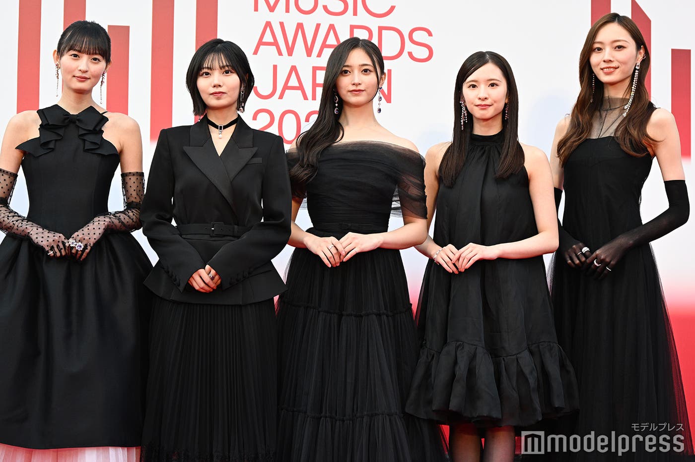 乃木坂46、透明感際立つブラックドレス姿 梅澤美波ら5人でレカペ登場【MUSIC AWARDS JAPAN】